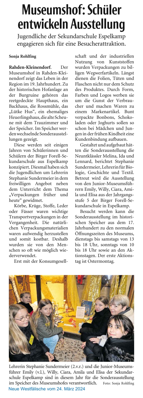 Museumshof: Schüler entwickeln Ausstellung (NW, 24.03.2024)