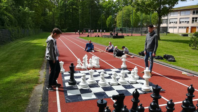 03.05.2018 Seit einiger Zeit bietet Lehrer Jan Oberhommert seine Schach-AG an. Jedes Jahr gibt es interessierte Schülerinnen und Schüler, die es zu diesem Klassiker der Brettspiele hinzieht. Um zu gewinnen, gibt es zahlreiche Möglichkeiten und scheinbar endlose Kombinationen. Zwangloses Üben mit hoher Konzentration und Spaß, der auch nicht zu kurz kommt. Es ist eine Herausforderung, im voraus zu kombinieren, welchen Zug der Gegner als nächsten tun wird. Reicht es für ein "Schach matt" oder wird es nur ein "Remis"? Es ist jedes Mal spannend, das herauszufinden. Weiß ist am Zug ...