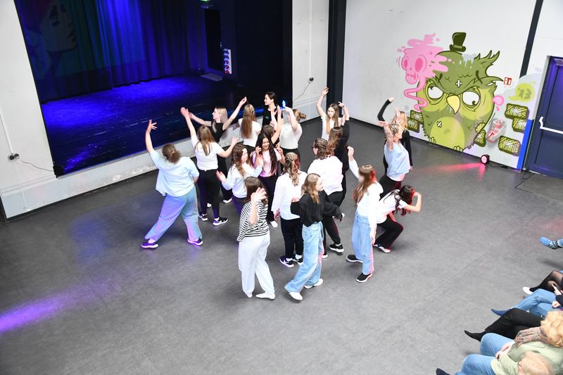 12.02.2026 „Raum geben – Raum nehmen“ lautete das Motto, unter dem das Projekt „Kulturelle Vielfalt – Vielfalt der Kulturen“ in diesem Jahr stattfand. Die Birger-Forell-Sekundarschule und das Berufskolleg Lübbecke haben das Projekt jetzt schon zum elften Mal gemeinsam durchgeführt. Ort der Projektwoche war dieses Mal das Jugendzentrum Isy7. Der dortige Zuschauerraum sowie die Galerie des Zentrums waren bis auf den letzten Platz gefüllt. Alle Gäste durften sich auf mitreißende und berührende Darbietungen während der Werkschau freuen.