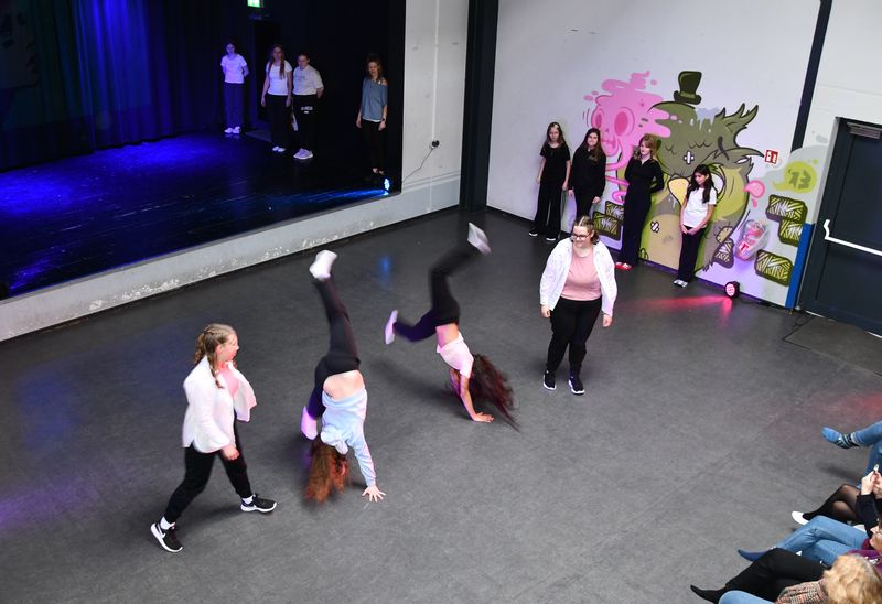Die Werkschau endete mit einer fulminanten Tanzshow. Choreografin und Tanzpädagogin Romy Kolb aus Wien, die schon bei früheren Werkschauen dabei war, hatte ihre langjährige Erfahrung eingebracht. Ihr Stil verbindet die Housekultur mit zeitgenössischem Tanz. Dadurch schafft sie eine einzigartige Verbindung von tänzerischen Techniken und kulturellen Werten. Mit ihrem freien spielerischen Zugang fördert sie Kreativität und Ausdrucksfähigkeit. Dass ihr das im Kulturprojekt auch dieses Mal gelungen war, demonstrierten die Tänzerinnen eindrucksvoll. Sich ständig verändernde Formationen wechselten mit varietéreifen Turneinlagen. Das Publikum klatschte begeistert Beifall.