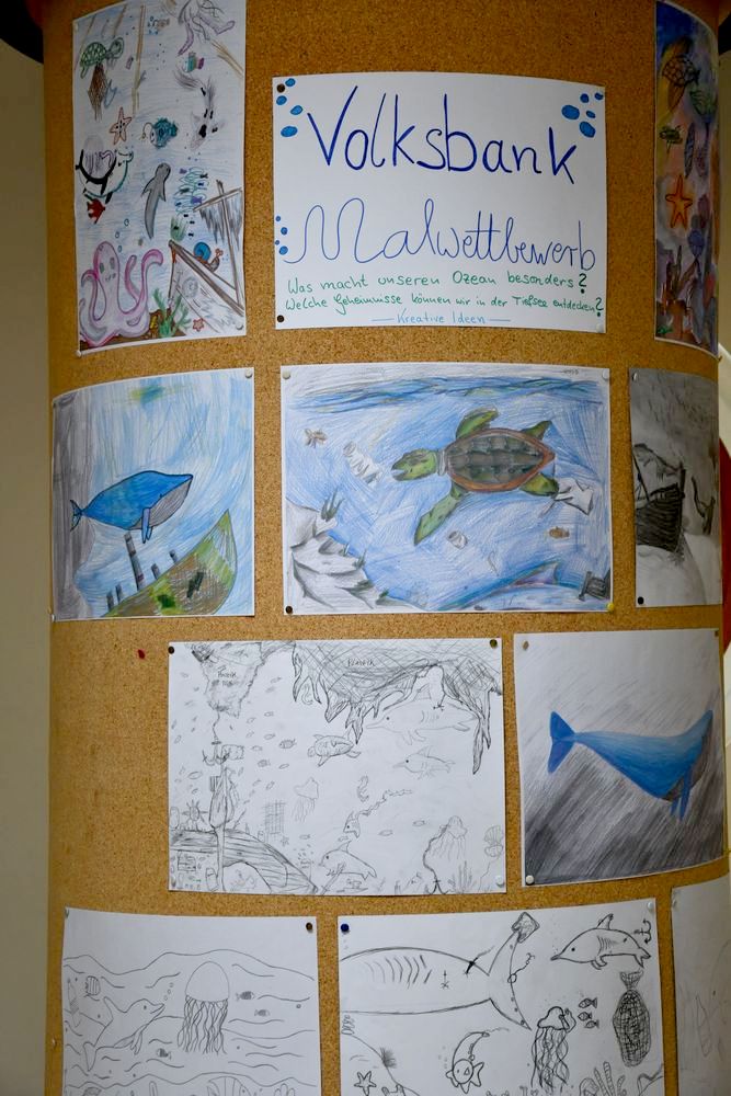 05.02.2026 (grie/hass) Schülerinnen und Schüler aus der Klasse 7a und dem Kunstkurs WP2 haben beim Mal- und Zeichenwettbewerb der Volksbank PLUS eG mitgemacht. Dabei sind sehr gut gelungene Bilder herausgekommen. Sie haben allesamt eine hohe künstlerische Qualität. Im Wettbewerb ging es darum, kreative Ideen zum Thema Ozeane und Meere im Bild festzuhalten: "Was begeistert dich an Ozeanen und Meeren? Welche Geheimnisse können wir dort noch entdecken? Welche Farben und Formen gibt es dort? Und wie können wir dazu beitragen, diese faszinierende Welt zu bewahren?" Mit diesen Fragen als Inspiration ließen die Jugendlichen eigenständig und ohne fremde Hilfe ihrer Kreativität freien Lauf. Alle eingereichten Bilder haben Chancen auf attraktive Preise.