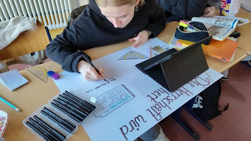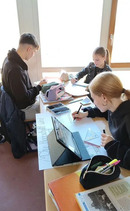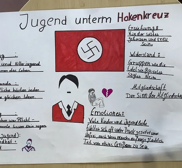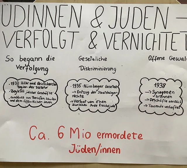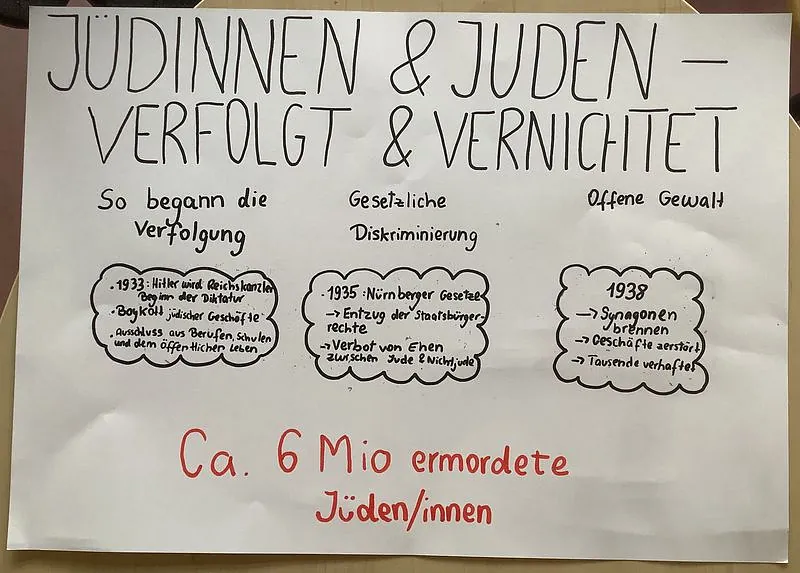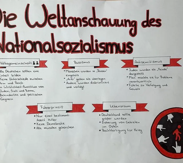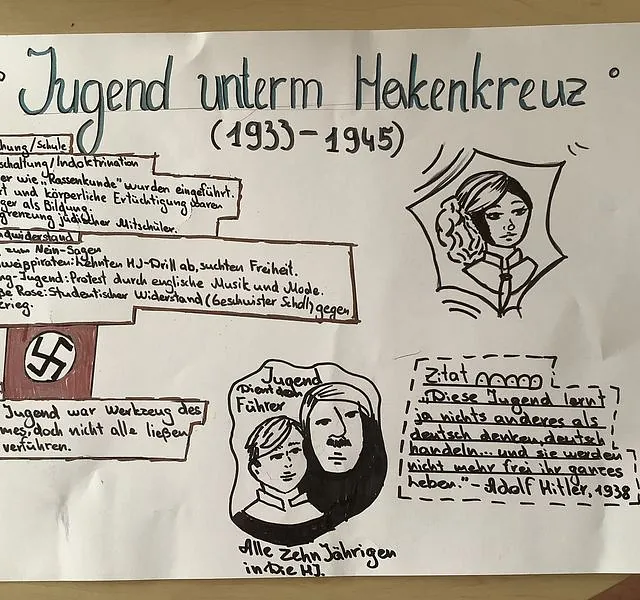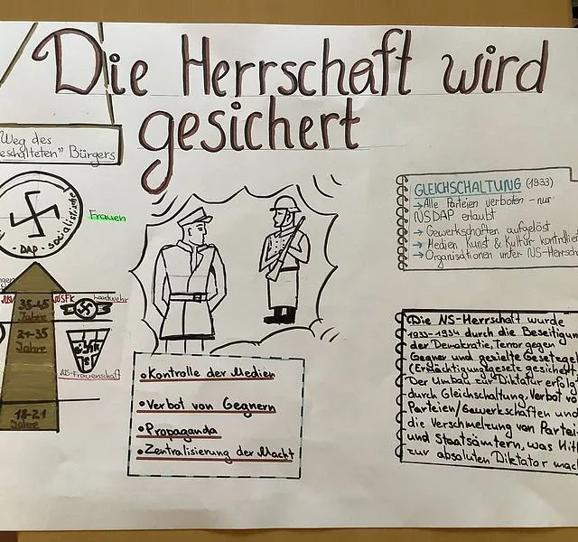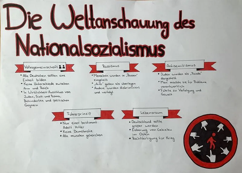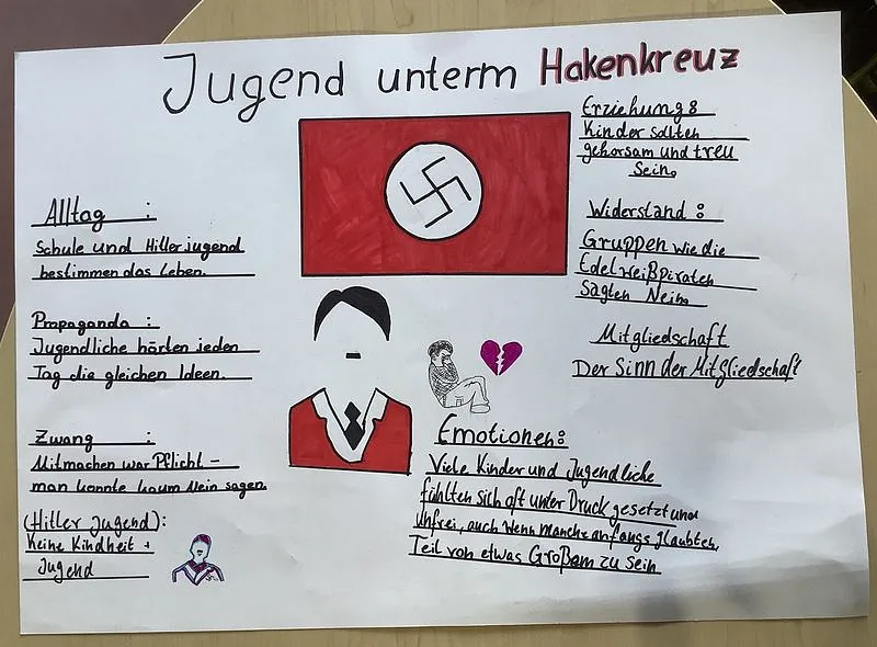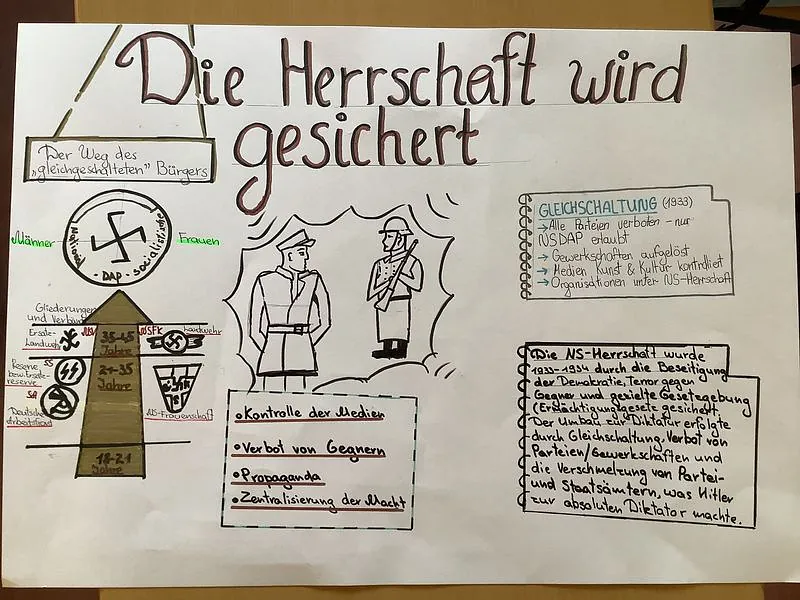 März 2026 In der Klasse 9b steht das Thema "Nationalsozialismus" auf dem Lehrplan. Die Klasse hat dazu einige Lernplakate erstellt, die im Klassenzimmer aufgehängt wurden und zum Nachlesen dienen.