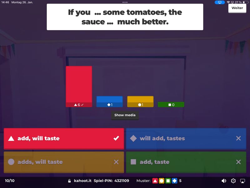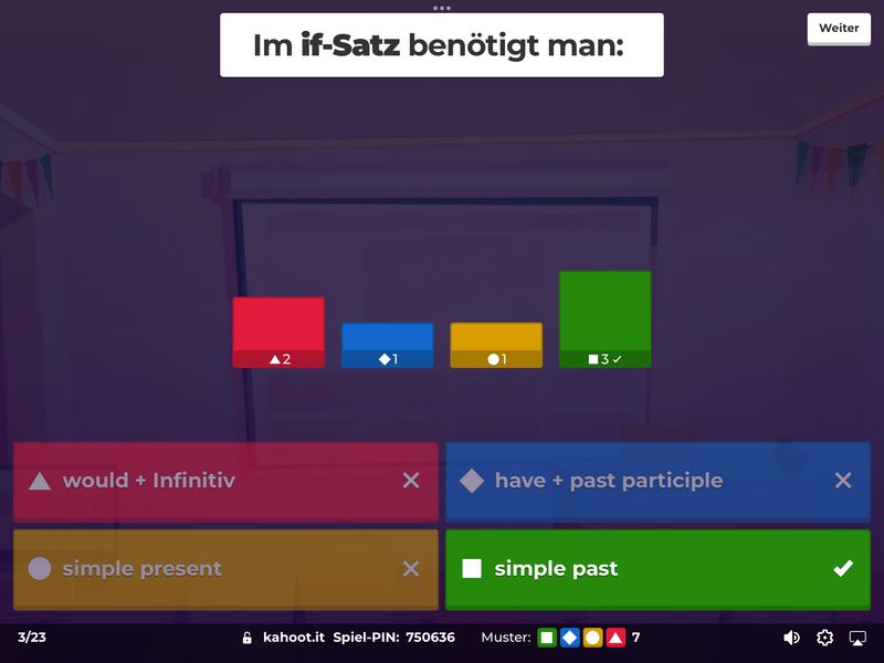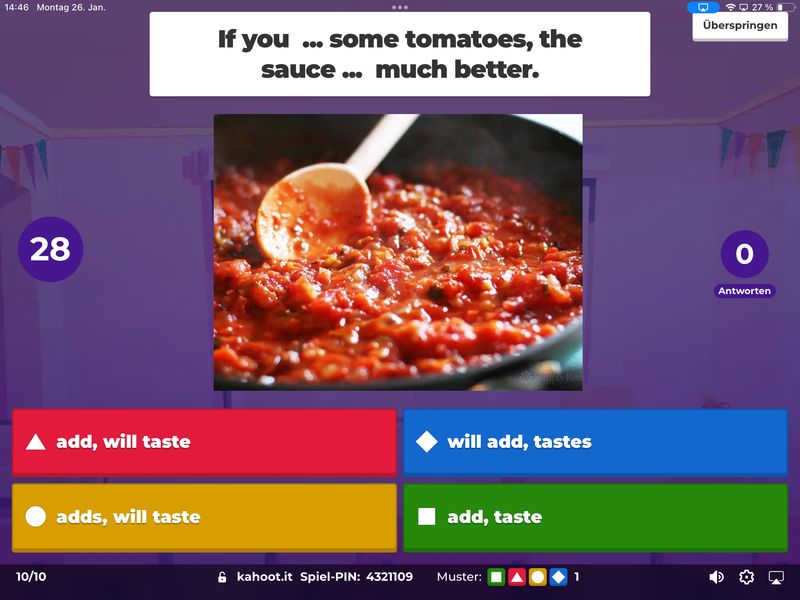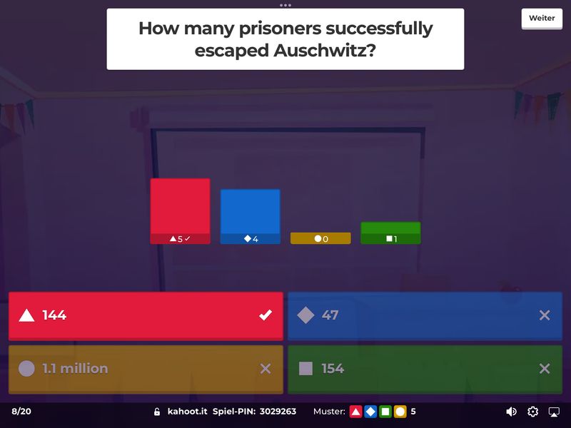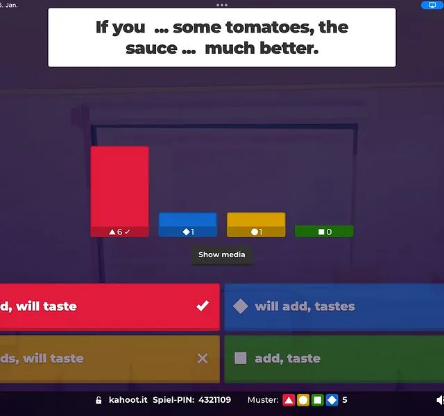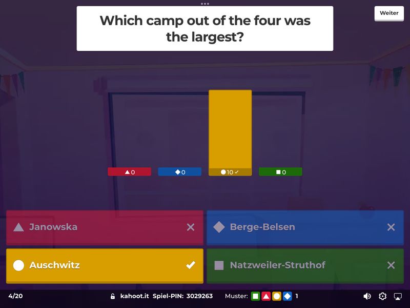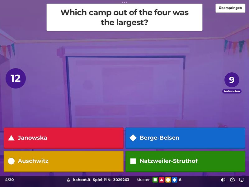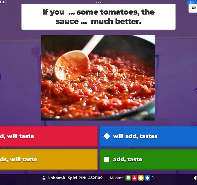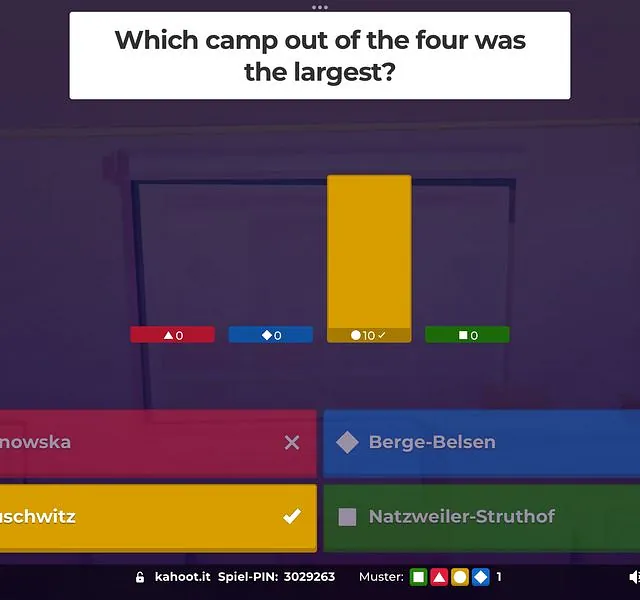 Januar/Februar 2026 Die Klassen 8b und 8c haben ihre Kenntnisse über conditional sentences type 2 (die bekannten If-Sätze Typ 2), Landeskunde über Kalifornien und ihr Wissen über die Vernichtung der Juden im Konzentrationslager Auschwitz-Birkenau mit Hilfe der Plattform Kahoot! überprüft. Dabei brachte der Spiel- und Wettbewerbcharakter von Kahoot! neben dem Lernerfolg eine Menge Spaß.