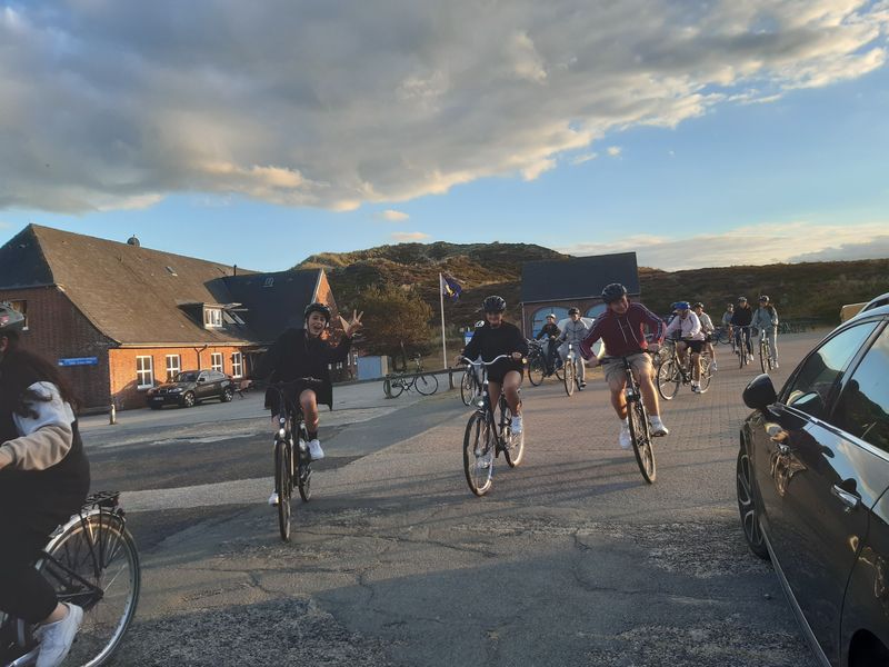 06.10.2022 (süme) Vom 29.08. bis zum 02.09.2022 fuhren die 10. Klassen der Birger-Forell-Sekundarschule im Rahmen ihrer Studienfahrt in die nördlichste Gemeinde Deutschlands, nach List auf Sylt. Die insgesamt 82 Schülerinnen und Schüler der vier Abschlussklassen übernachteten mit ihren Lehrkräften in der Jugendherberge in List und besuchten von dort aus das Erlebniszentrum Naturgewalten Sylt und das Aquarium in Westerland. Außerdem wurden Stand-Up-Paddling und Fahrradtouren angeboten. Die gemeinsamen Strandbesuche samt Sonnenuntergängen am Meer und das Beobachten von Sternen rundeten die Erlebnisse ab.