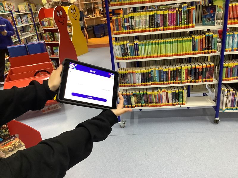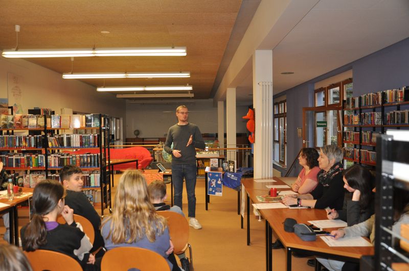 Eine Möglichkeit, wie Schülerinnen und Schüler zum Lesen motiviert werden können, erfuhren die Lesescouts am 18. Oktober 2022 in der Stadtbücherei Espelkamps. Nach einer kurzen Büchereieinführung, bei der u.a. die „Gaming-Ecke“ mit einer PlayStation 5 für Erstaunen sorgte, ging es an die iPads. Mit deren Hilfe und der App „Biparcours“ hatten die Lesescouts nun die Aufgabe, in Form eines Quiz-Parcours die Bücherei zu erkunden. Dabei mussten sie durch die Bücherei laufen, Fragen zu den unterschiedlichsten Büchern beantworten und möglichst viele Punkte in kurzer Zeit sammeln. Plötzlich war die Zeit schon um und der zweite Programmpunkt des Tages, das Spielen eines Escape Rooms, musste auf einen nächsten Termin verschoben werden. Bevor aber der Escape Room als Möglichkeit zur Leseförderung ausprobiert wird, versuchen sich die Lesescouts nun an einem Biparcours für die eigene Schulbücherei.