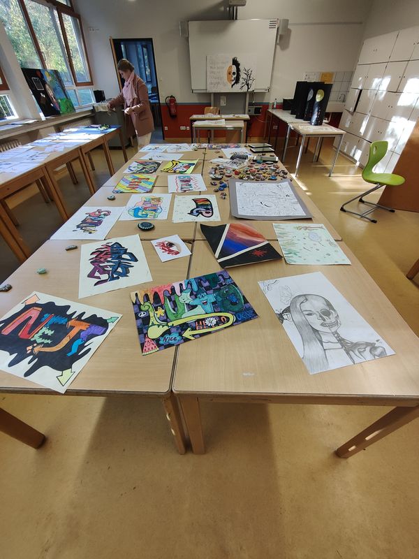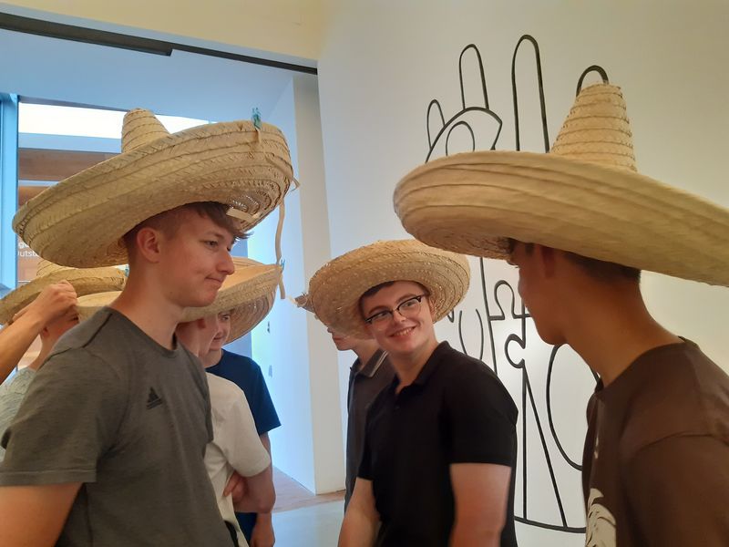 Die Schülerinnen und Schüler der 9d ließen sich einfangen von moderner Kunst, die in der Führung sehr gut erklärt wurde. Am Ende wollten manche gar nicht die Räume verlassen, so sehr hielten die vielfältigen Eindrücke sie gefangen. Gruppenaktionen wie auch individuelle Kreativität machten im klimatisierten Museum sehr viel Spaß. Das wirkte sogar noch nach, als bei über dreißig Grad im Schatten der Zug ausfiel und alle erst eine Stunde später zu Hause ankamen. Der Tag hatte sich voll und ganz gelohnt und den Schülerinnen und Schülern teils völlig neue Eindrücke und Erkenntnisse gebracht.