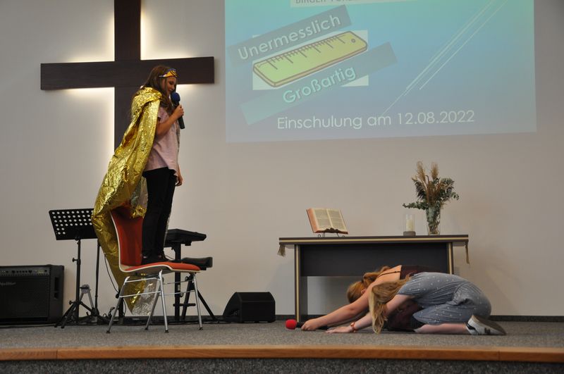Die Andacht stimmte auf den Weg der neuen Schülerinnen und Schüler, den sie nun gehen werden, ein. Auf diesem Weg werde Gott sie mit all seiner Liebe schützend begleiten, zeigte die Andacht mit ihren Liedern und den Worten des Psalms 145.