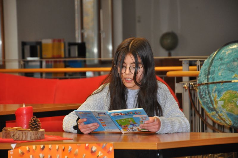 Irem Gülter aus der 6b gewann den Wettbewerb mit zwei Passagen aus „Lesepiraten – Buchstabengeschichten“ von Sandra Grimm. In der ersten Geschichte löst Anne ein kniffliges, „streng geheimes“ Rätsel und erwirbt sich dadurch die Anerkennung ihrer Freundinnen. Die zweite Geschichte erzählt von Max und seinem Opa, der sich zu Hause ein Bein bricht. Max steht ihm bei, bis der Rettungswagen eintrifft.