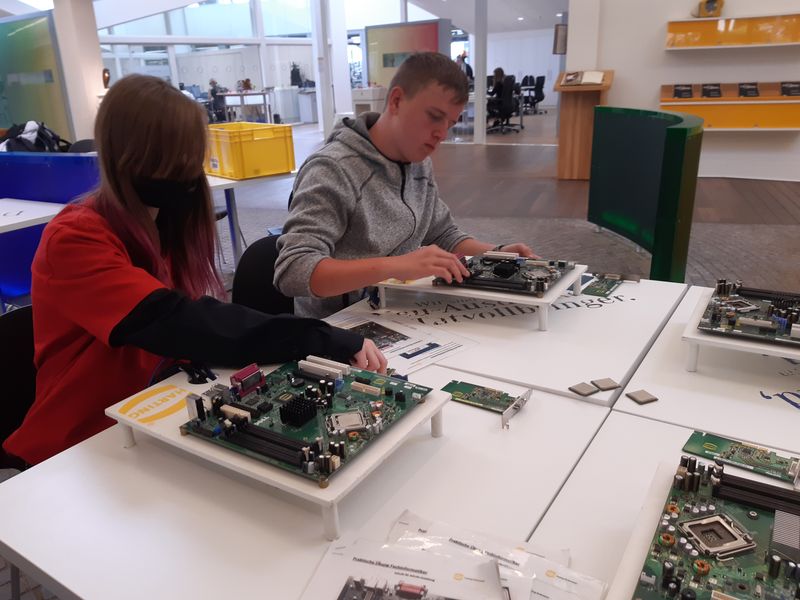 Als praktische Ergänzung dazu dient der Besuch der Schülerinnen und Schüler im NAZHA der Firma Harting. Am 20. und 21. Juni konnten sie nach 2 Jahren pandemiebedingter Einschränkungen endlich wieder ein paar Stunden im Rahmen der Berufsorientierung dort verbringen und an verschiedenen Stationen ihr handwerkliches Geschick und ihre Kreativität unter Beweis stellen. Die Gruppen erfuhren auch interessante Dinge zur Geschichte und dem aktuellen Geschäftsgeschehen. Vor allem nutzten sie die Chance, sich bereits jetzt nach Ausbildungsmöglichkeiten zu erkundigen.
