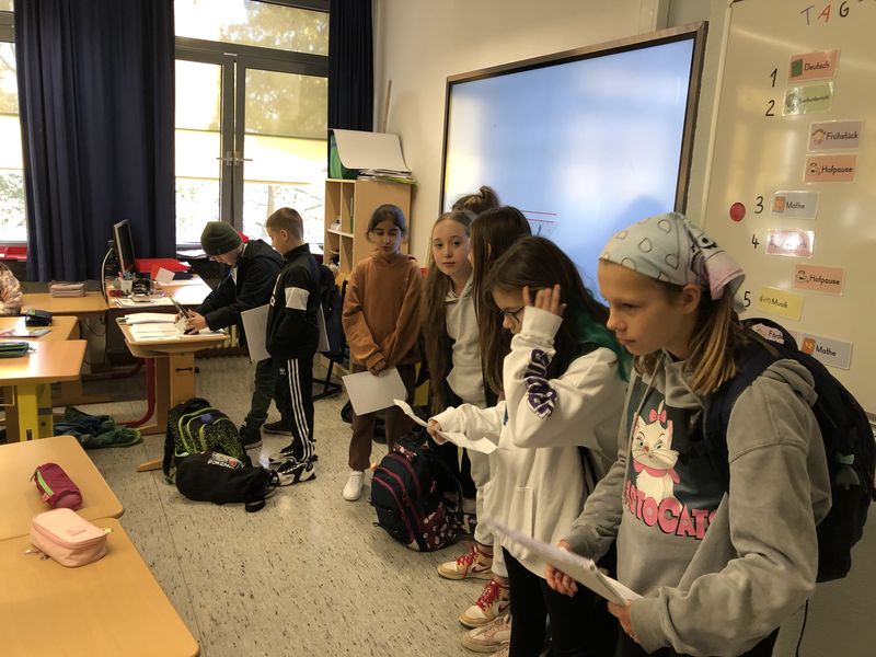 30.11.2022 (gerk) Anlässlich des bundesweiten Vorlesetages am 18.11.22, Deutschlands größtes Vorlesefest, wurde die Klasse 5a der Birger-Forell-Sekundarschule zu Autorinnen und Autoren von spannenden Gruselgeschichten. Inspiriert von Storys aus der eigenen Schulbücherei schrieben die Schülerinnen und Schüler in den letzten Wochen des Deutschunterrichts eifrig an ihrer eigenen Gruselgeschichte, um sie dann endlich am bundesweiten Vorlesetag den Schülerinnen und Schülern der benachbarten Mittwaldschule vorzulesen. Nach intensiver Vorbereitungs- und Überarbeitungszeit war es am 21.11.22 endlich so weit. Die Klasse 5a packte ihre Geschichten, die entweder auf einem Blatt Papier oder auf dem iPad geschrieben wurden, ein und besuchten die Mittwaldschule.
