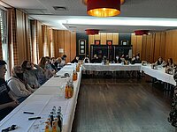 15.08.2022 (thiele) Was ist eigentlich ein Businessplan und wozu braucht man eine Satzung? Diese und viele weitere Fragen haben sich 20 Schülerinnen und Schüler der Birger-Forell-Sekundarschule gefragt und dies aus einem wichtigen Grund: Die Gründung einer eigenen Schülergenossenschaft steht kurz bevor. Empfangen wurden die Schülerinnen und Schüler im Bürgerhaus von Tristan Becker, dem Landeskoordinator für die Schülergenossenschaften in NRW. An einem großen Konferenztisch wurde gemeinsam getagt und auch bereits tatkräftig