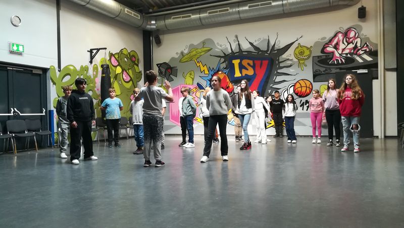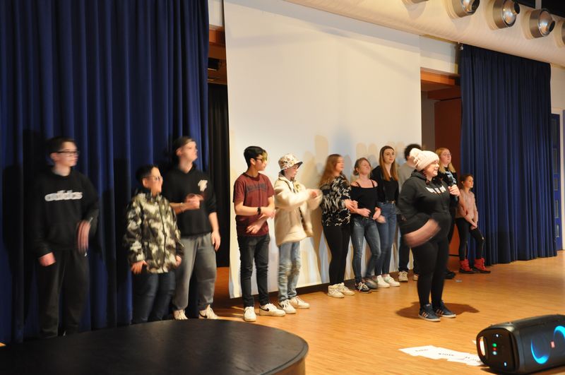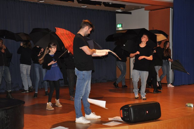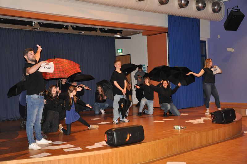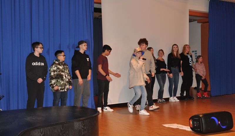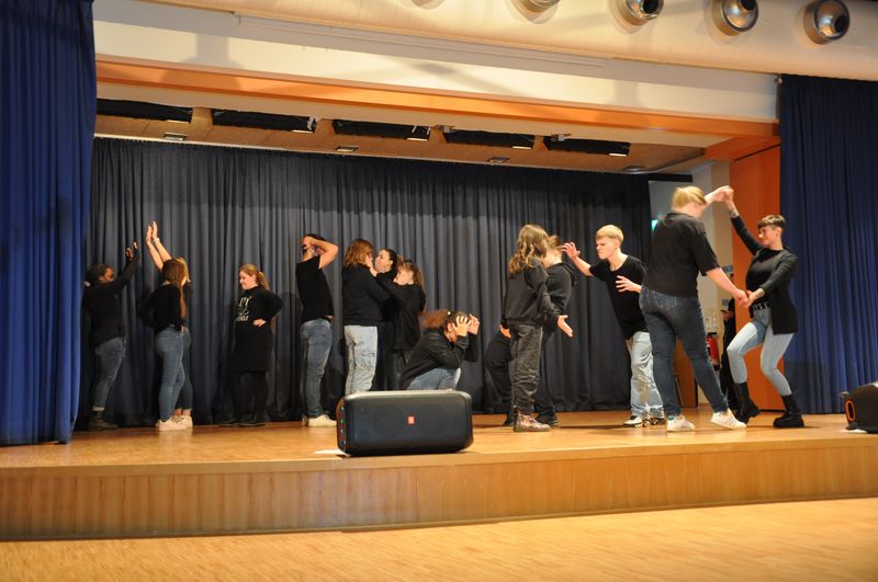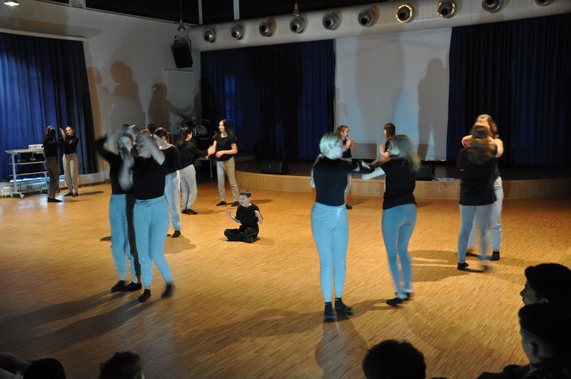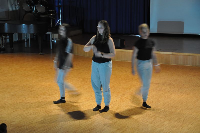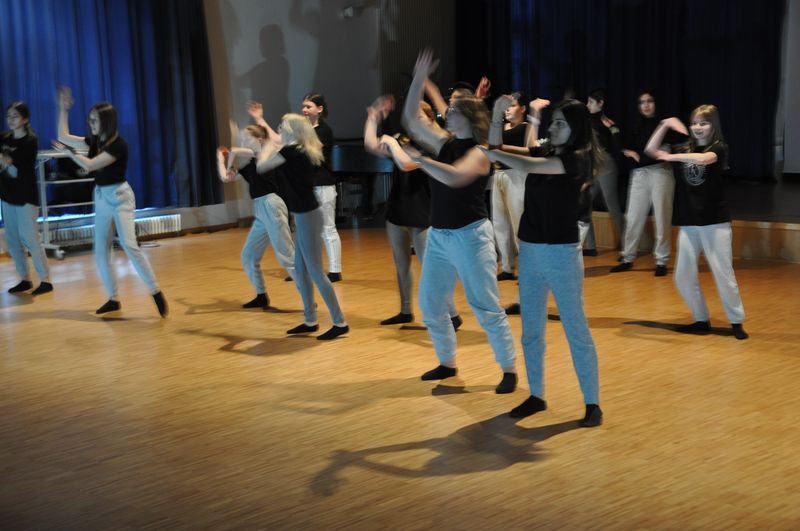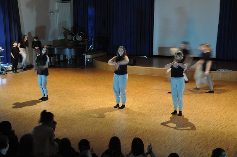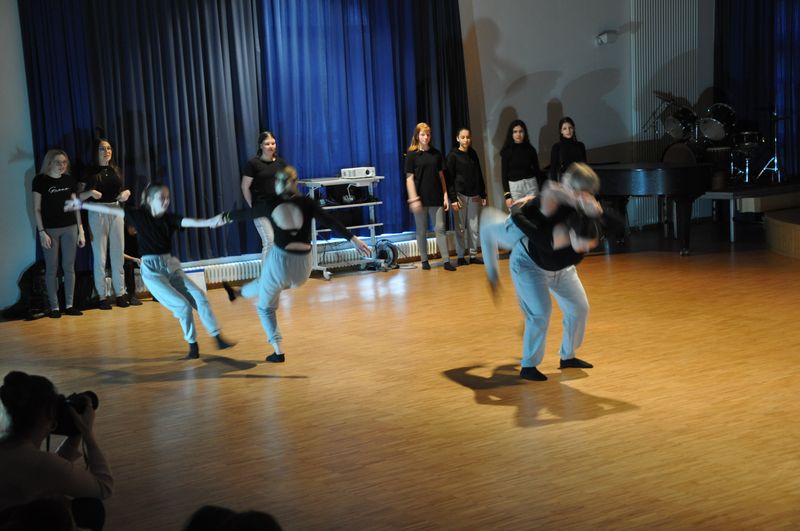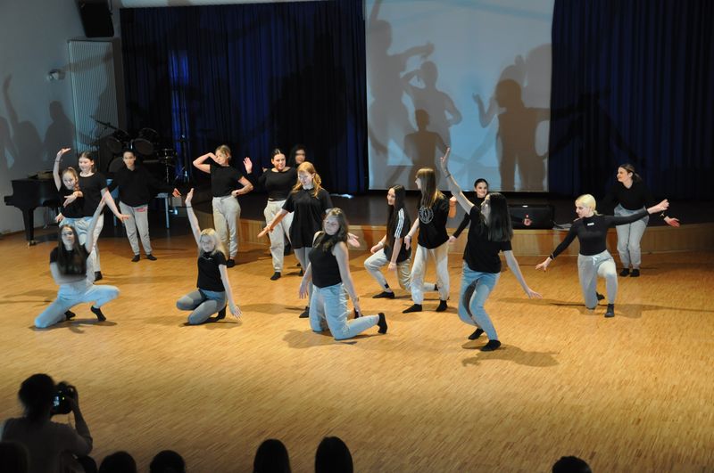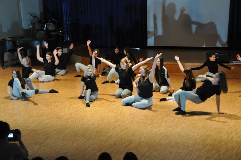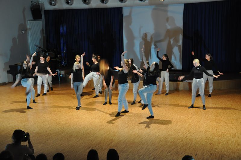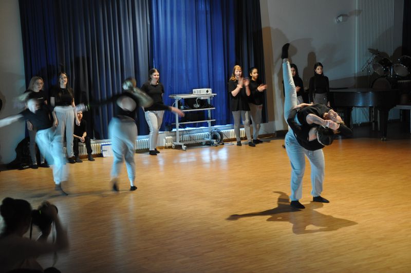Mit einem fetzigen Rap über Ziele, Wünsche und Träume leiteten Schneiders Rapper über zum großen Finale. Die Tänzerinnen und Tänzer unter der Leitung von Romy Kolb, Choreographin aus Wien, zeigten auch am Ende der Werkschau ihr ganzes Können. Voll Energie und Elan legten sie eine beeindruckende und mitreißende Choreographie aufs Parkett, getoppt noch mit einigen Breakdance-Einlagen und anderer Akrobatik. Die getanzten Figuren, untermalt von einem coolen Beat, elektrisierten das Publikum.