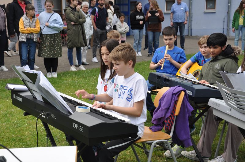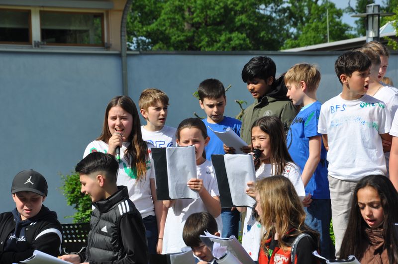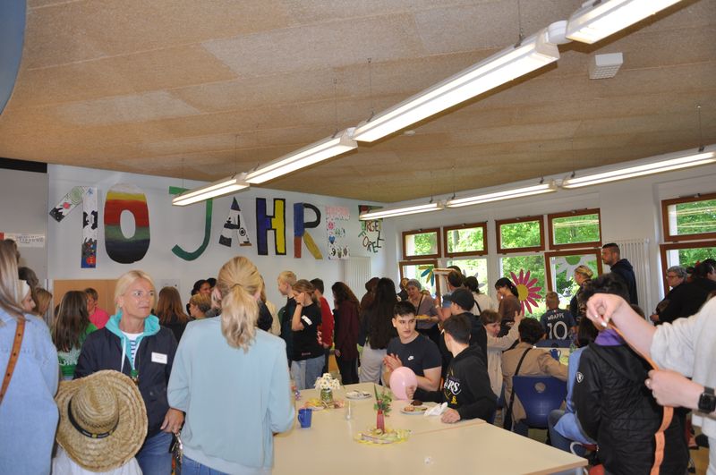 29.05.2023 Bei angenehmen Temperaturen und beinahe wolkenlosem Himmel hatte sich die Schulgemeinde der Birger-Forell-Sekundarschule am Nachmittag des 25. Mai versammelt, um das zehnjährige Bestehen ihrer Schule zu feiern. Zahlreiche Gäste waren erschienen: die Kinder und Jugendlichen aller Jahrgangsstufen und deren Eltern, ehemalige Schülerinnen und Schüler, eine Abordnung des benachbarten Söderblom-Gymnasiums sowie der Bürgermeister der Stadt Espelkamp. Auch ehemalige Lehrkräfte und Mitarbeiterinnen hatten sich eingefunden.