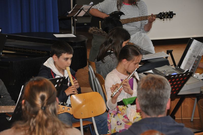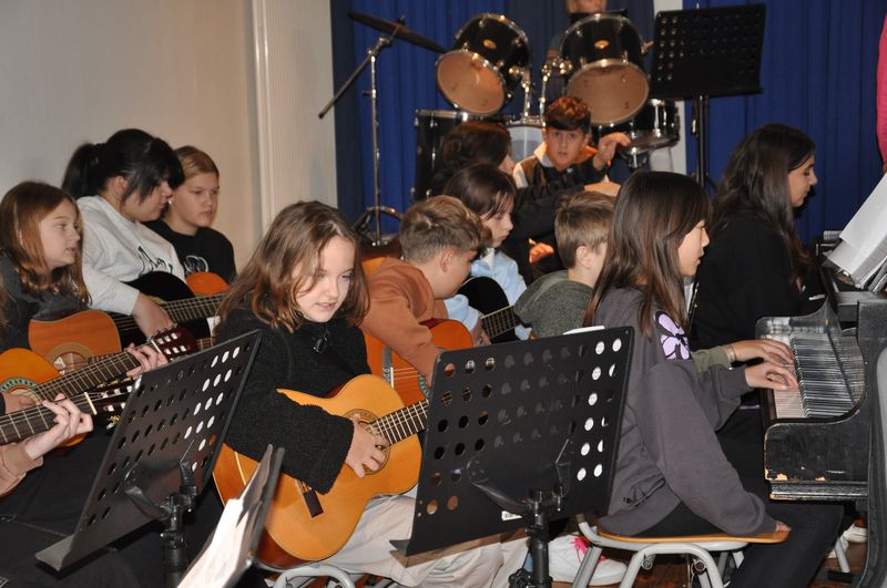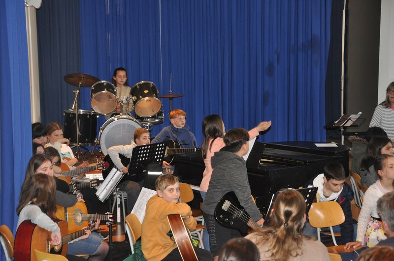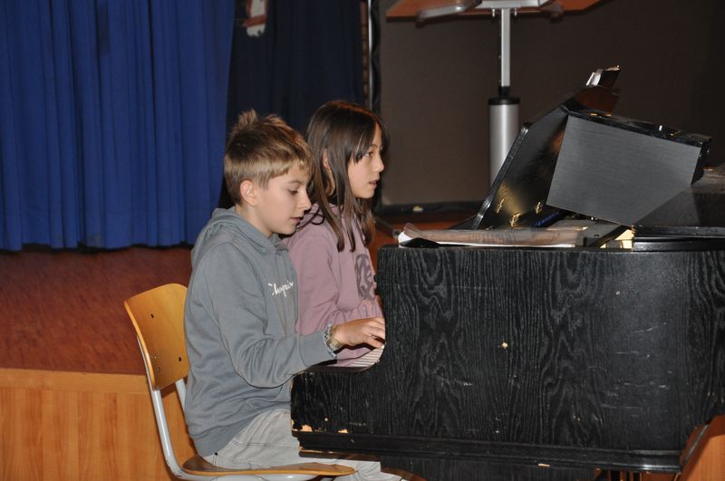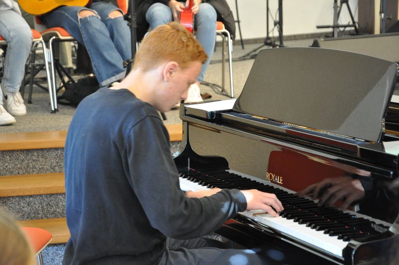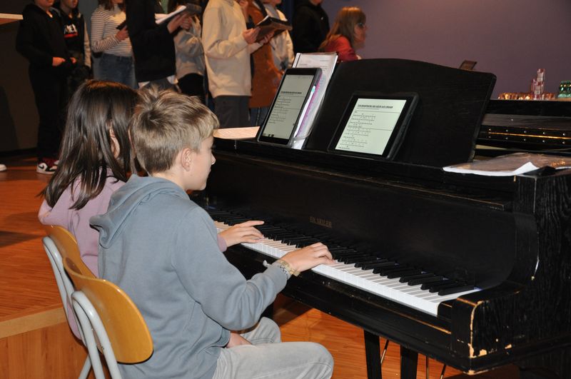 Musikalisch umrahmten die Musikklasse 6c, Schülerinnen aus der 6b und der 10c und Dietrich Enns aus der 10c am Flügel die Einschulung.