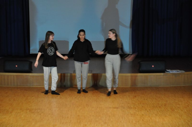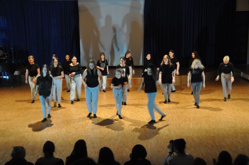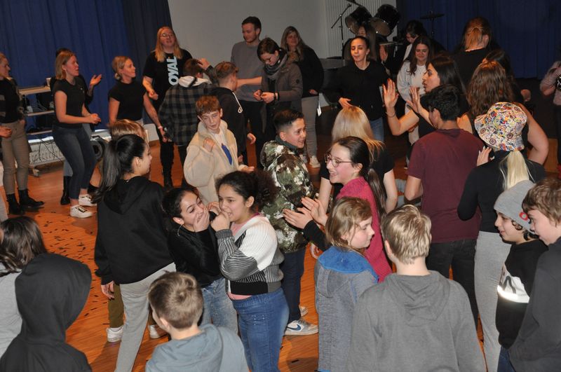 Die theaterpädagogische Gruppe unter der Leitung von Viola Schneider, Theaterpädagogin am Stadttheater Minden, thematisierte mit ihren Sequenzen alles, was Jugendliche und junge Erwachsene derzeit bewegt. Im ersten Teil der Darbietung unter dem Titel „Ich habe Sorge“ ging es um familiäre Probleme, Schwierigkeiten in der Schule und Mißstände in der Gesellschaft. Auch die Angst vor Krieg kam zur Sprache. Dabei wurde deutlich, dass Schwierigkeiten in der Kommunikation überwindbar seien, wenn man sich austauscht und miteinander redet. Nur dadurch fänden sich Lösungen. Der zweite Teil „Ich wünsch mir“ zeigte eindrucksvoll, dass es Jugendlichen sehr wichtig sei, nicht ausgegrenzt zu werden, sondern dazugehören zu dürfen. „Für mich ist Glück“ thematisierte, wonach sich alle Menschen sehnen: Mit einer Adaption des Songs „Herr Rossi sucht das Glück“ und einer dazu perfekt abgestimmten Tanzchoreographie veranschaulichten die Tänzerinnen und Tänzer des Bereichs „Community Dance“, dass Glück sehr wichtig und notwendig für alle Menschen dieser Welt ist. Auch diese Darbietung berührte die Emotionen des Publikums und verursachte beim einen oder anderen Gänsehaut.