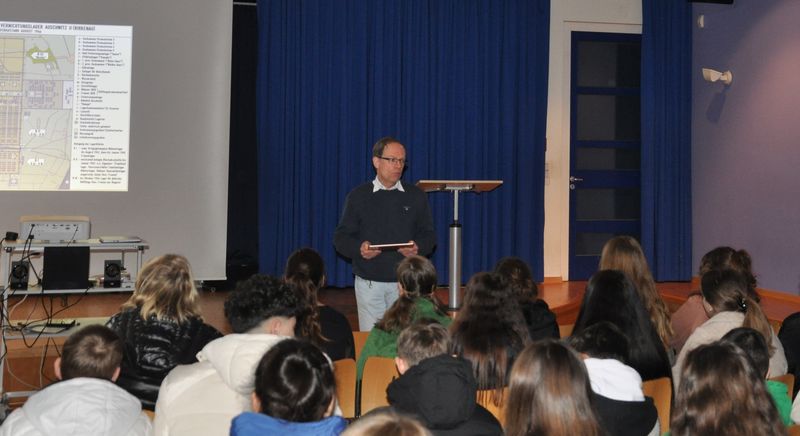 Anschaulich zeigten Bilder den 8. Klassen, wie die Vernichtung der Häftlinge im Lager Auschwitz-Birkenau ablief. Niko Hass schilderte die damaligen Ereignisse sehr lebendig, so dass etliche Schülerinnen und Schüler betroffen und nachdenklich reagierten, dann aber auch interessiert nachfragten.