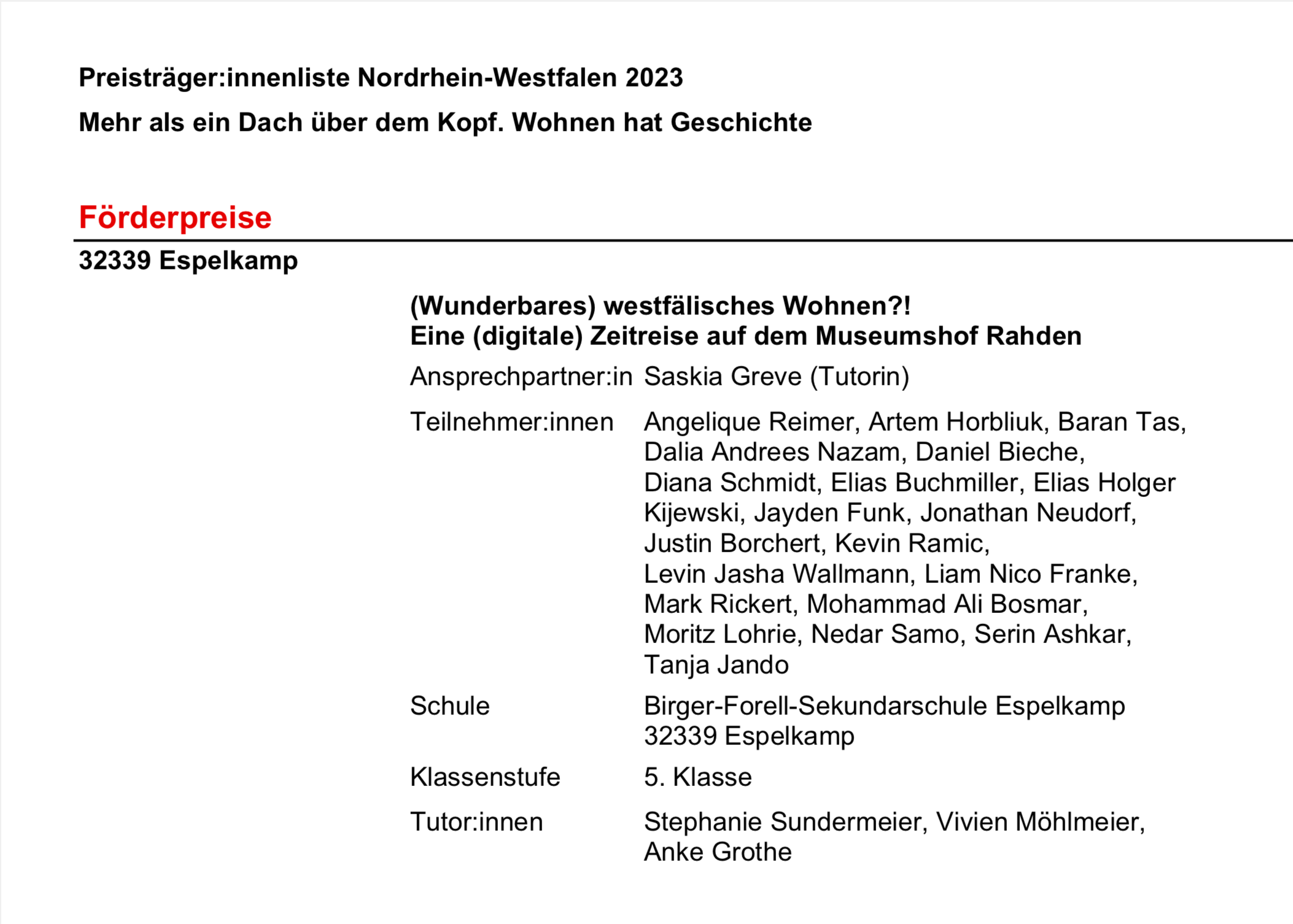 Und einen Förderpreis gewonnen hat die 5d!!