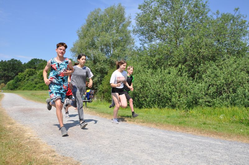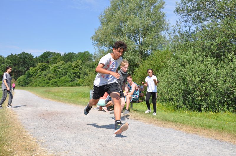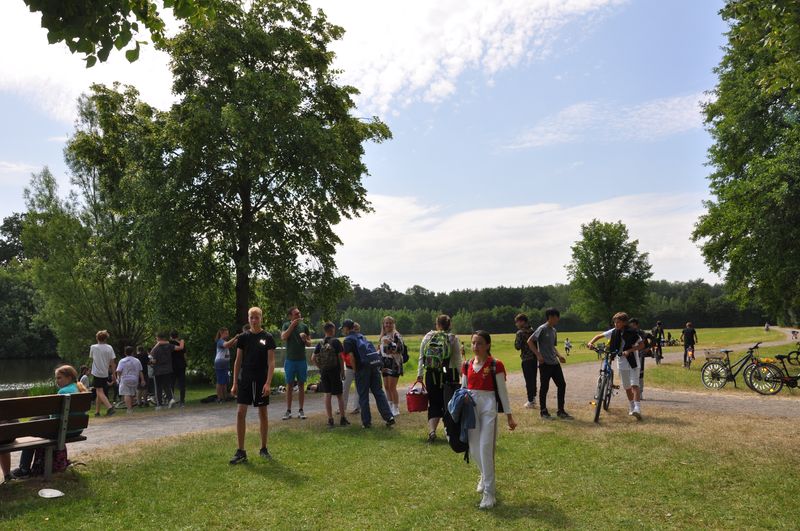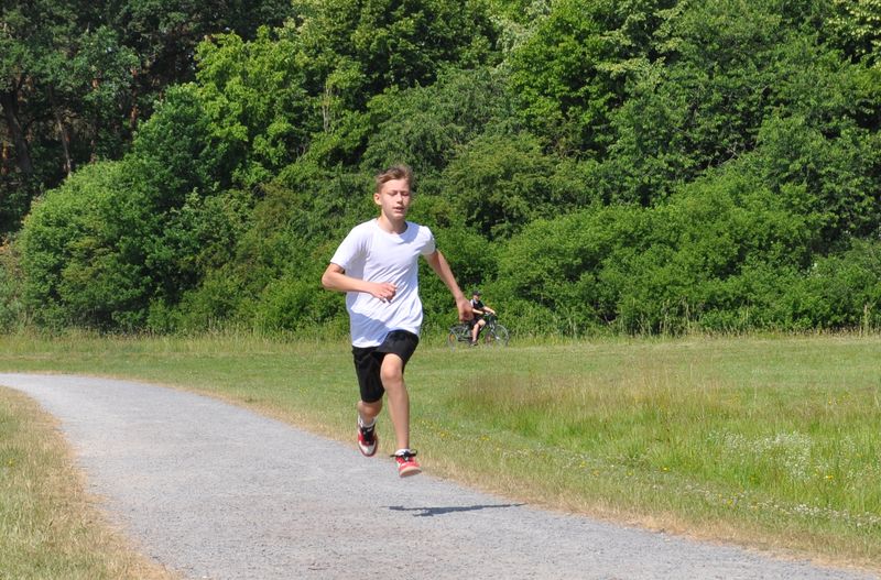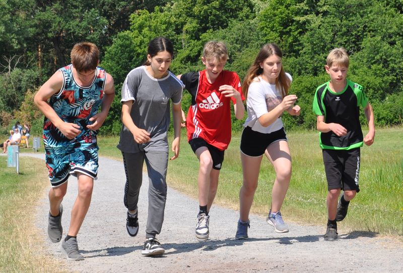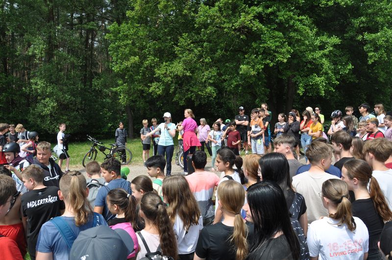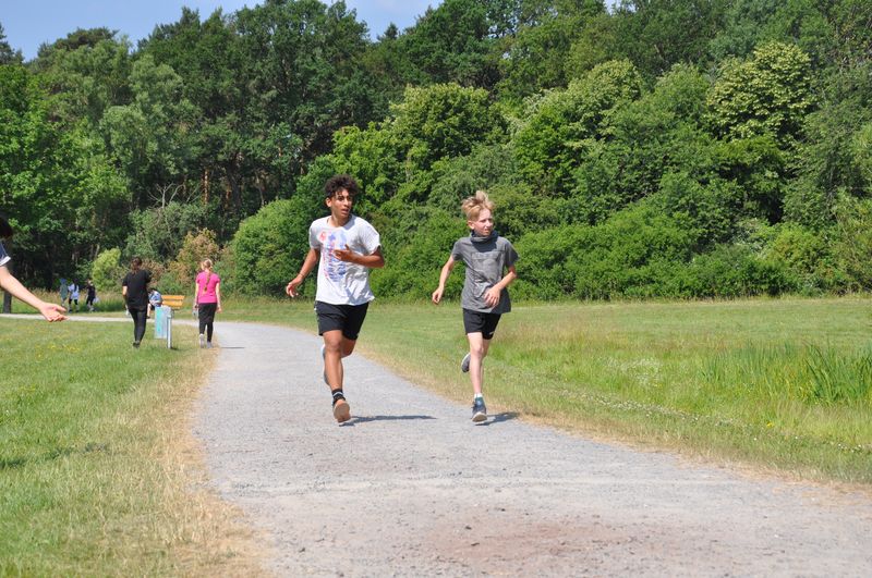19.06.2023 Mittlerweile traditionsgemäß fand der Triathlon der Birger-Forell- Sekundarschule rund um den Kleihügelsee statt. Die Klassen der Jahrgangsstufen 5 bis 7 versammelten sich dort mit ihren Lehrkräften bei idealem Wetter. Beim Laufen und Fahrradfahren konnten die Schülerinnen und Schüler ihr Können unter Beweis stellen. Auch dieses Jahr galt es, eine Distanz von etwa 8 Kilometern mit dem Rad zu überwinden. Die Strecke begann am Parkplatz beim Kleihügelsee, folgte einem Rundkurs bis etwa zum Gasthaus Rose und endete in Ufernähe wieder am See. Um den Kleihügelsee herun forderte die bekannte Rundstrecke die Schülerinnen und Schüler heraus. Hier waren zwei Disziplinen zu absolvieren: ein Kurzlauf mit einer Runde und ein Langlauf mit zwei Runden um den See.