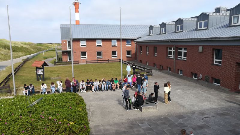 Dabei lag, wie auf solchen Fahrten üblich, ein wichtiger Schwerpunkt auf der Stärkung der Klassengemeinschaft. Das begann bereits am Tag der Abfahrt, als sich die Klassen 6a, 6b und 6c auf zwei Reisebusse verteilten und die Jugendlichen dadurch die Kontakte zu ihren Parallelklassen vertiefen konnten. Glücklich angekommen, verteilten sich die Schülerinnen und Schüler auf ihre Zimmer, nahmen gemeinsam ihr erstes Mittagessen auf der Insel ein und erkundeten das Bünder Schullandheim und Umgebung im Westen Wangerooges.