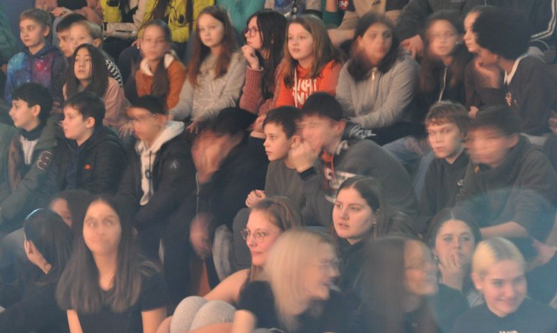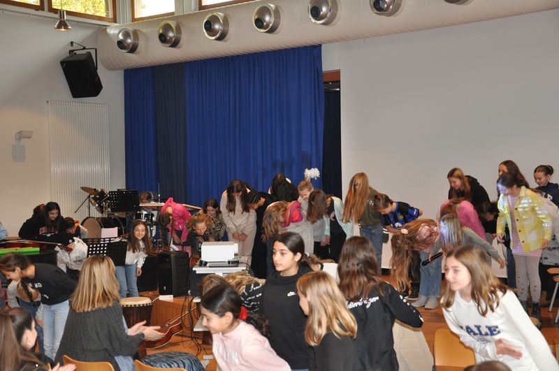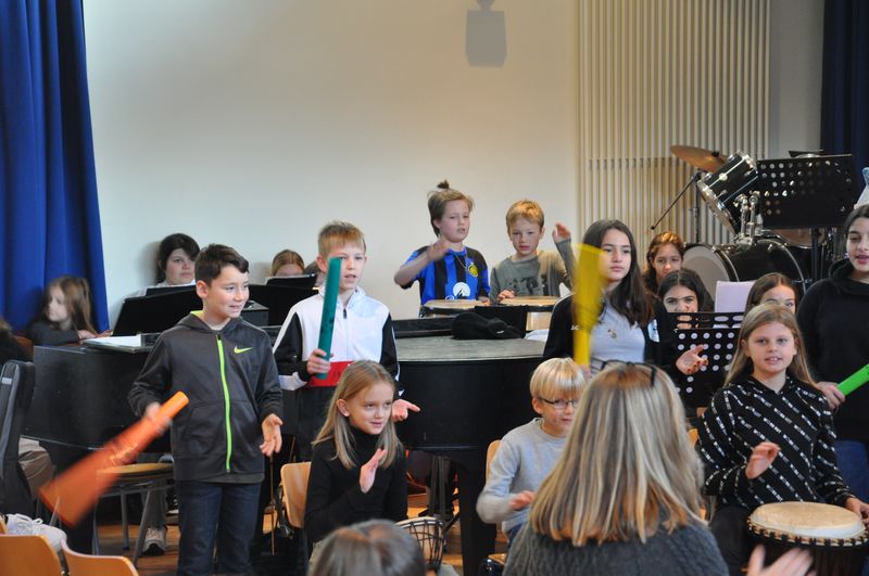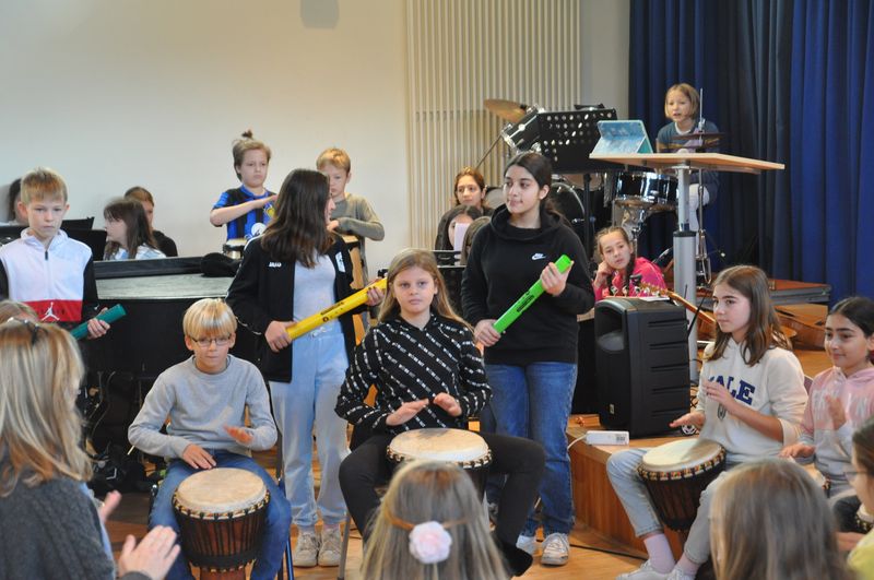 06.11.2023 Am Samstag, dem 4. November 2023, öffnete die Birger-Forell-Sekundarschule ihre Pforten zum Tag der offenen Tür, der jedes Jahr um diese Zeit stattfindet. Der Tag stand dieses Mal unter dem Motto „Leben und Lernen an der BFS“. Viele Schülerinnen und Schüler der vierten Klassen aus den umliegenden Grundschulen waren mit ihren Eltern und Verwandten der Einladung in die Aula der Schule gefolgt. Dort erlebten sie ein buntes Programm mit musikalischen und szenischen Darbietungen, das die Schülerinnen und Schüler der Musikklassen 5c und 6c sowie der AG „Theater, Tanz und Musik“ und des WP-Faches Darstellen und Gestalten stimmungsvoll auf die Bühne brachten. Den Auftakt machte das Lied „Neno Litasimama“ aus Tansania als Hommage an die dortige Partnerschule. Schattenspiele zum Thema Haloween schlossen sich an, gefolgt von witzigen Szenen aus dem Alltag.