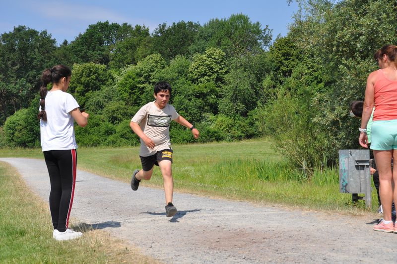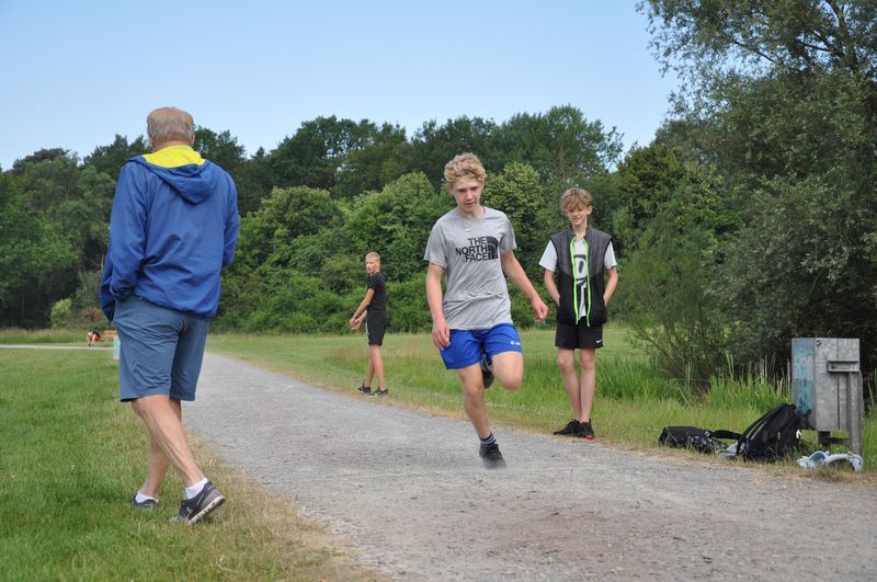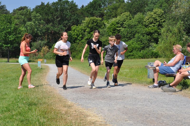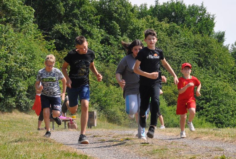 Kurz danach begann dann auch schon der Wettkampf, mit den bekannten Disziplinen aus den Kreismeisterschaften: Die Birger-Forell-Sekundarschule war als erste mit der Hindernis-Sprint-Staffel dran, ging dann über zum Zonenweitsprung, gefolgt vom Medizinballweitstoß, bei dem sich aber bereits einige andere Mannschaften anstellten und auf ihren Einsatz warteten. Aufgrund der längeren Wartezeit zog das Team der Birger-Forell-Sekundarschule die Wurfraketen-Weitwurf-Station vor. Weitere Stationen waren der Scher-Hochsprung und der abschließende 8-Minuten-Lauf. Dieser wurde wegen der heißen Temperaturen auf vier Minuten verkürzt. Die Siegerehrung fand am späten Nachmittag statt.