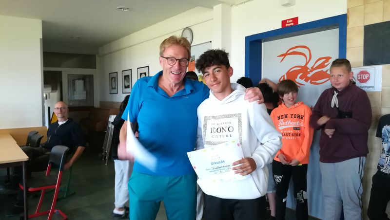 Entsprechend stolz waren die Schülerinnen und Schüler nach dem Spiel. Kayra aus der 7c kommentierte glücklich: „Ich habe heute keinen reingekriegt!“ Berat aus der 6b fand gut: „Ich habe viele Tore geschossen. Das war super!“ Und sein Klassenkamerad Joel meinte: „Leo war der krasseste Torwart des Turniers.“ Einmal mehr zeigte sich der pädagogische Wert eines solchen Turniers: Zusammenhalt während der Wettkämpfe und das anschließende befriedigende Gefühl, dass man gemeinsam erfolgreich war. Das sind Werte, die den Jugendlichen auch außerhalb des Sports in vielen anderen Bereichen nützen und sie voranbringen.
