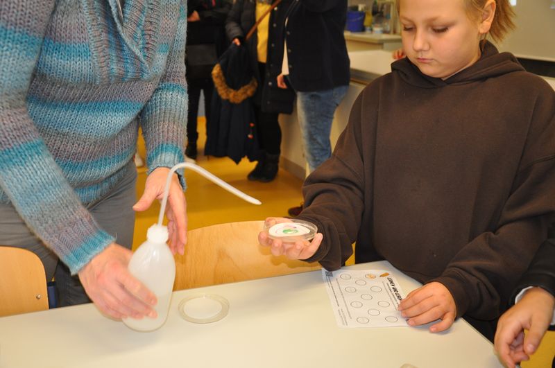 Nach einer herzlichen Begrüßung durch Schulleiterin Anja Buhrmann und wichtigen Informationen über die Schule, präsentiert von Abteilungsleiterin Sabrina Ramsberg, wurden die Eltern mit ihren Kindern in Kleingruppen durch die Schule geführt. Die künftigen Schülerinnen und Schüler konnten sich an den vielen Mitmachstationen ausprobieren. Die Museums-AG bot allerlei Interessantes dar. Hier erfuhren die jungen Gäste unter anderem, wie man früher Tiere gehalten hat. Dabei konnten sie mit den Händen Gegenstände ertasten, die verdeckt in einem Schuhkarton lagen. Die Überraschung war groß, als sich das Flauschige in der Hand als Schafwolle entpuppte. Im Kunst- und Textilraum durften die Kinder Schneemannkerzen herstellen und dabei ihre Kreativität ausprobieren. Jana aus der vierten Klasse erklärte Kunst auch gleich zu ihrem Lieblingsfach. „Ich finde es toll, dass Kunst hier so gefördert wird“, sagte sie mit einem Lächeln. Die Schulküche bot allerlei Leckereien und gab einen anschaulichen Einblick in das Fach Hauswirtschaft. Im Technikraum erhielten die Kinder und ihre Eltern einen Einblick in den technisch-handwerklichen Lernbereich der Schule und bestaunten die während des Unterrichts entstandenen Gegenstände. Im Fachbereich Naturwissenschaften gab es ebenfalls viel Interessantes. Hier erfuhr man auf sehr greifbare Weise Wissenswertes über Lernen auf dem Bauernhof, wie ein Planetarium arbeitet, und über die Insel Wangerooge, die in Jahrgang 6 jedes Jahr Ziel einer mehrtägigen Klassenfahrt ist. An einer Station durften die Kinder unter Anleitung den PH-Wert von Flüssigkeiten ermitteln und staunten nicht schlecht, als sich die Farbe der Proben auf einem Teststreifen wie durch Zauberhand änderte. Bridget aus der vierten Klasse meinte dazu: „Das ist schön, dass sich die Farben da ändern. Experimentieren finde ich toll!“ In der Schulbücherei wurden Sprachspiele in Englisch und Book Tasting mit iPads angeboten. Hier konnten die Kinder ihre bereits vorhandenen Kenntnisse in der Fremdsprache ausprobieren. Sie konnten in verschiedenen Büchern lesen und bekamen einen Einblick in die Fremdsprachen auf der weiterführenden Schule. In einem der vielen Klassenräume erlebten die Kinder und ihre Eltern, wie das iPad den Unterricht im Fach Gesellschaftslehre virtuell unterstützen kann. Mit Hilfe einer App konnten sie beispielsweise einen ägyptischen Sarkophag direkt ins Klassenzimmer projizieren und tiefgehender untersuchen, was sie sehr spannend fanden. Die Räume des Kraftwerks, der Schulsozialarbeit und der naturwissenschaftlichen Sammlungen standen den Besucherinnen und Besuchern ebenso offen wie der Spieleraum und die Sporthalle. Dieses Jahr hatte die Schule an diesem Tag besondere Gäste. Aus Ungarn war eine Abordnung der dortigen Partnerschulen angereist. Nach knapp zwei Wochen in Espelkamp und Umgebung erlebten sie an ihrem letzten Besuchstag den Tag der offenen Tür mit. Ein Gegenbesuch der Birger-Forell-Sekundarschule ist für nächstes Jahr geplant.