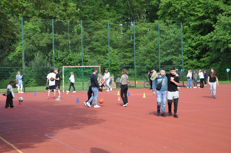 Der Schulsanitätsdienst unterstützte die Lehrkräfte und trat dort in Aktion, wo es nötig war. Glücklicherweise gab es nur ganz wenige kleinere Blessuren, die schnell versorgt waren.