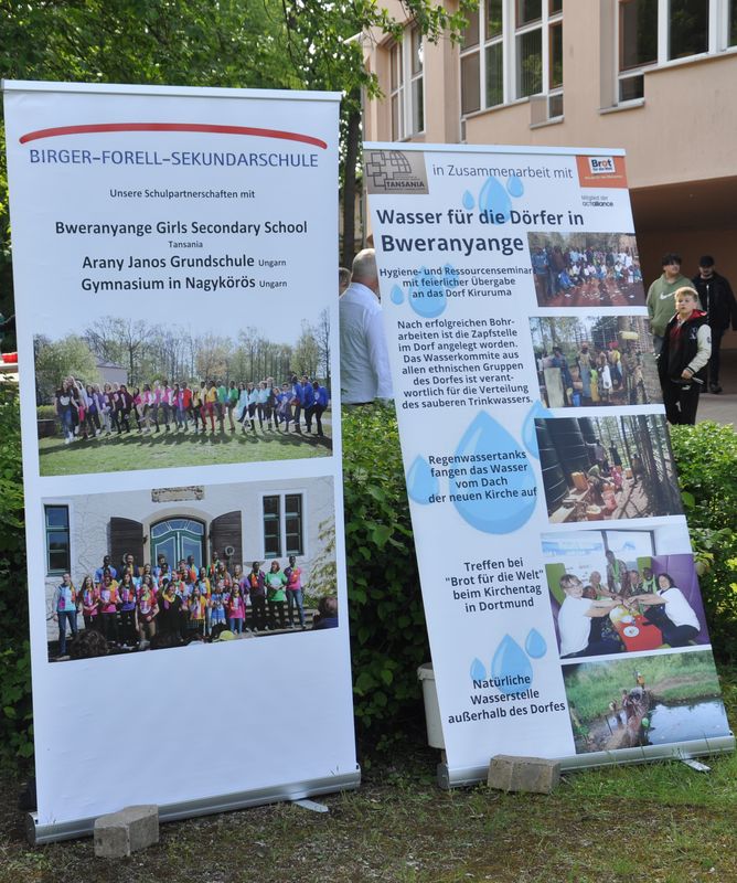 Als Vertreterin des benachbarten Söderblom-Gymnasiums sprach Schulleiterin Marie-Luise Schellong einige Worte. Zehn Jahre seien ein Grund zum Feiern für eine bunte Schule für alle. Dabei habe die Zahl zehn neben ihrem Jubiläumscharakter auch eine religiöse Bedeutung. Laut der Bibel sei sie ein Symbol der Verantwortung des Menschen vor Gott. Verantwortung zu übernehmen und verantwortlich zu handeln, sei ein wichtiges pädagogisches Leitziel, um erfolgreiche Bildungsarbeit zu leisten und heranwachsende Kinder und Jugendliche zu voller Blüte zu bringen, ähnlich den Pflanzen im Schulgarten der Birger-Forell-Sekundarschule. Frau Schellong übergab für diesen Garten eine Pflanze als kleinen Beitrag zum Zeichen der Blüte und wünschte der Schule weiterhin alles Gute.