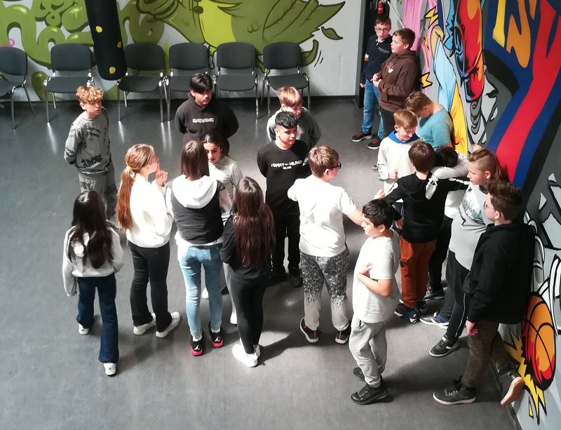 10.05.2023 (hass/rams) Zwei abwechslungsreiche Vormittage, die es in sich hatten, konnten die Klassen 6a und 6b der Birger-Forell-Sekundarschule Anfang Mai erleben. Sie nahmen an einem Projekt zur Gemeinschaftsstärkung teil, das der Sozialpädagoge Aaron Born aus Kirchlengern im Jugendzentrum Isy7 leitete. Zu seinen Aufgabenbereichen zählen unter anderem Sozialkompetenztraining und (Gewalt-) Präventionsarbeit. Die gruppendynamischen Prozesse, Spiele, Übungen und Gespräche gestalteten sich daher für die Schülerinnen und Schüler abwechslungsreich und setzten Denkprozesse in Gang. Ziel der Veranstaltung waren die Stärkung der Klassengemeinschaft und die Verbesserung der Kommunikation innerhalb der Klassen. Aaron Born gab dabei zwischendrin auf eine verständliche und einfühlsame Art immer mal wieder Hinweise, miteinander respektvoll ins Gespräch zu kommen. Es gelang den Schülerinnen und Schülern im Verlauf des Projekts immer besser, sich darauf einzulassen.