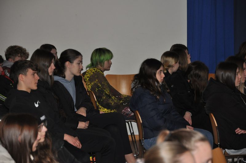 Die Schülerinnen und Schüler der 10. Klassen hörten im Rahmen einer Dokumentation dargestellte bewegende Erlebnisse von Zeitzeugen, die damals in oppositionellen Jugendgruppen wie der Swing-Jugend versuchten, sich der Bevormundung und Unterdrückung zu entziehen. Hier gab es viele Inhaftierungen, aber auch mutige Beispiele für ein Aufbegehren gegen den Terror des Hitler-Staates. Die Dokumentation wurde durch einen kurzen Vortrag von Christian Sümening ergänzt.
