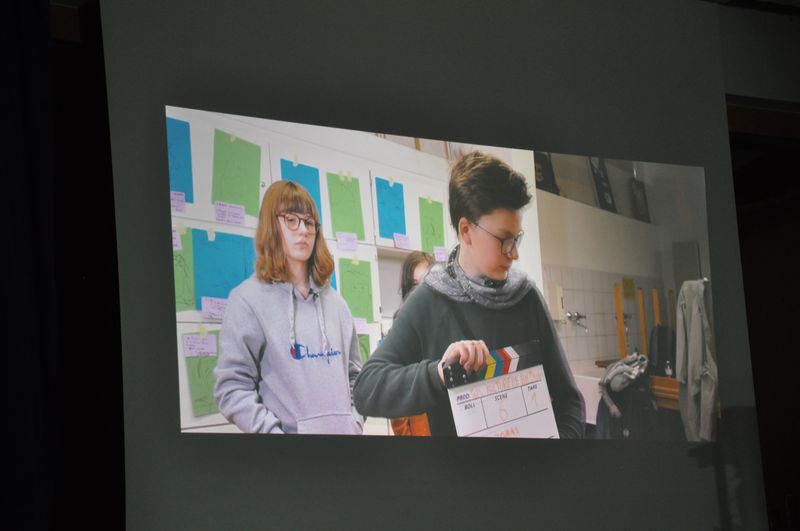 Den Schülerinnen und Schülern des 7. Jahrgangs verdeutlichte Christian Sümening die typischen Erpressermethoden der Nazis in deutschen Familien mit dem Ziel, die Jugend zu vereinnahmen und gleichzeitig Angst zu verbreiten. Ein Video zeigte dies sehr anschaulich. Dort heißt es unter anderem: „Die Angst der Menschen vor den Nazis ist wichtig. Denn wer Angst hat, wehrt sich nicht.“ Die Botschaft des Filmbeitrags brachte die Schülerinnen und Schüler zum Nachdenken und Nachfragen.