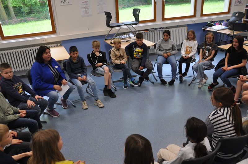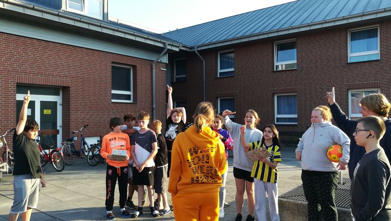 In der Abschlussrunde gaben die Schülerinnen und Schüler ihr Feedback ab. Neben dem Spaßfaktor waren sich alle einig, dass sie viel gelernt hatten. Leo und Jan meinten dazu: „Das war sehr lustig. Das mit dem Teamwork nehmen wir mit, da haben wir viel gelernt. Auch dass man nicht alles allein machen musste, fanden wir gut.“ Sami, Mika und Joel schlossen sich dem an: „Das Spiel mit der Bürste war am lehrreichsten, weil wir als Klasse zusammengehalten haben.“ Und Nikola, Natalia und Clarissa ergänzten: „Wir haben uns dabei richtig Mühe gegeben. Wenn man im Team zusammenarbeitet, kann man viel mehr schaffen.“