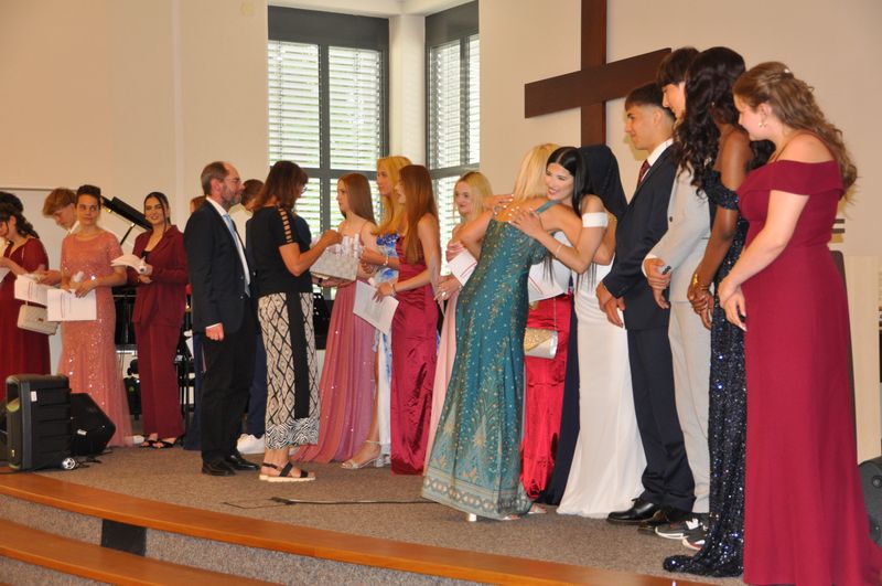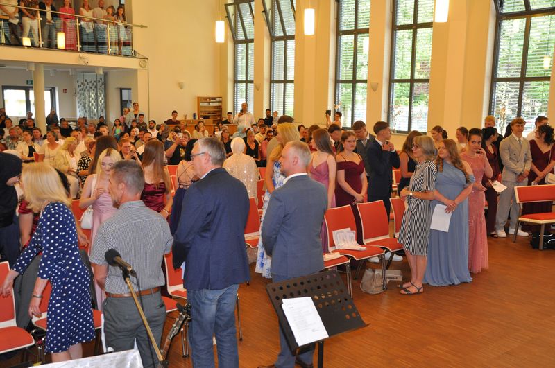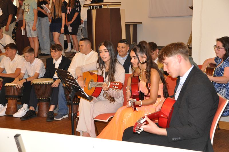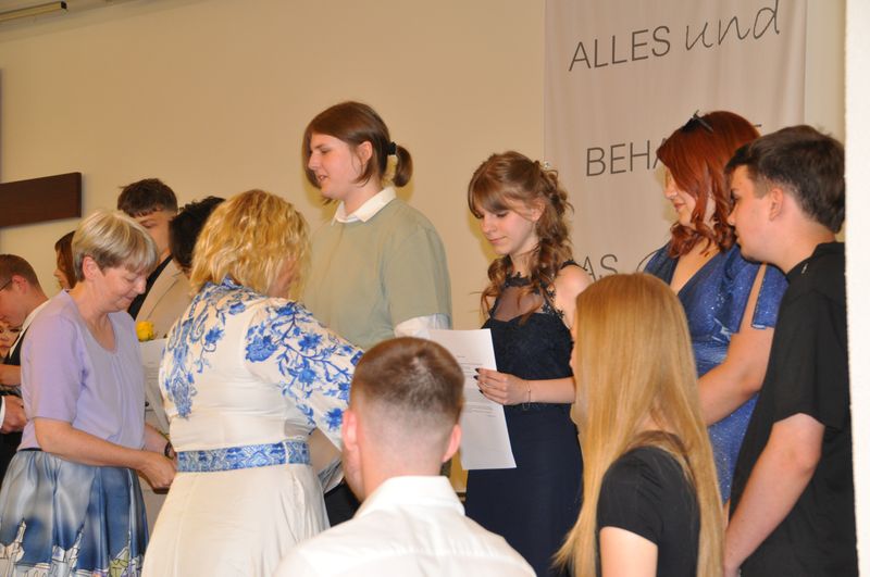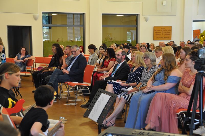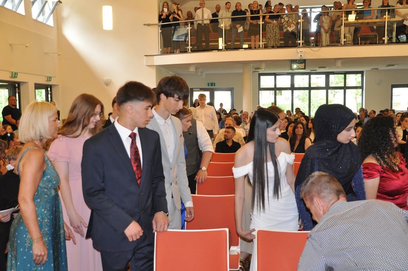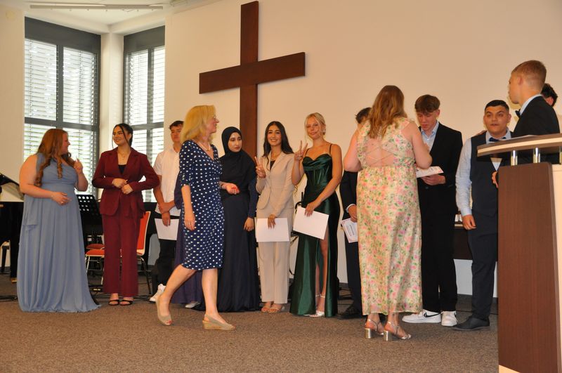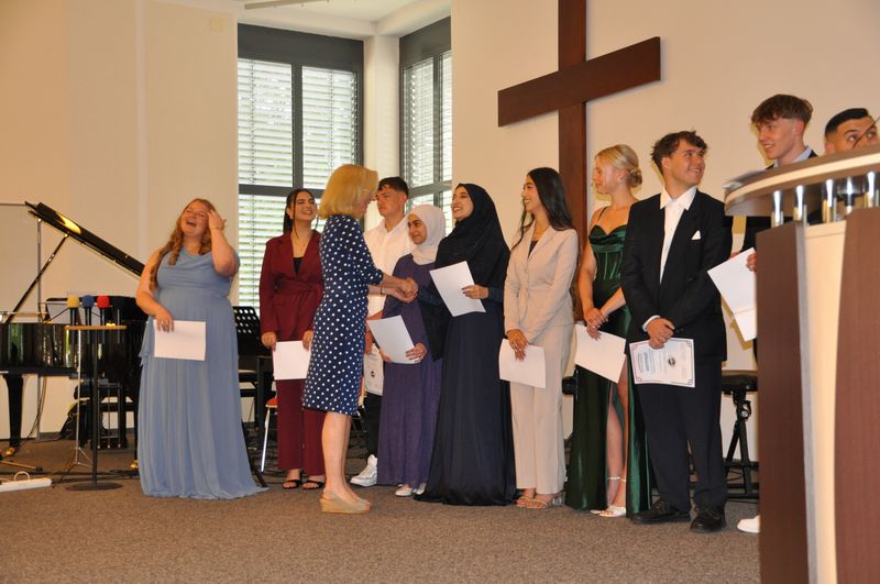 09.07.2025 Sechs Jahre an der weiterführenden Schule sind zu Ende gegangen. Sechs Jahre erfolgreichen Lernens, in denen es Veränderung, etliche zu meisternde Schwierigkeiten, aber auch viel Spaß und Kameradschaft gab. Auf diese Zeit blickten die Schülerinnen und Schüler der vier Abschlussklassen zurück, als sie am 4. Juli im Gemeindehaus der John-Gingerich-Gemeinde ihre Zeugnisse erhielten. Sie sind zu Persönlichkeiten gereift, die gelernt haben, zusammenzustehen und sich Herausforderungen zu stellen. Jeder und jede von ihnen ein Individuum und doch zusammen, zogen sie mit fröhlichen und gespannten Gesichtern in das Gemeindehaus ein. Für sie war es der Höhepunkt ihrer Schullaufbahn an der Birger-Forell-Sekundarschule.