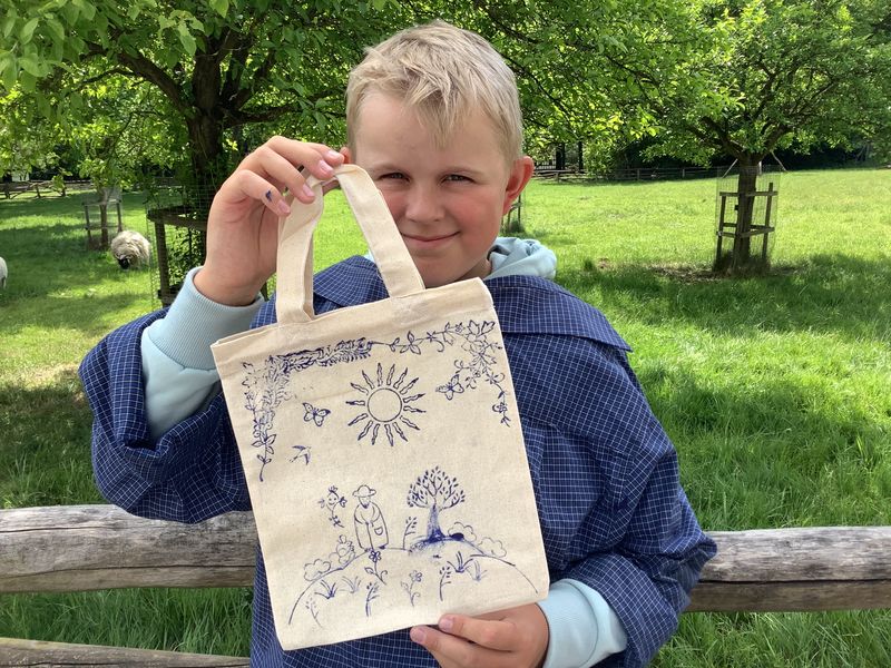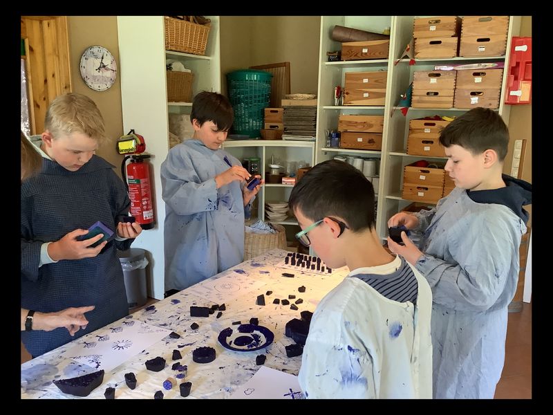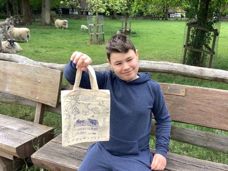 18.05.2025 (sund) Die Museums-AG durfte jetzt im Museumshof Rahden das Handwerk des Druckens erlernen. Blaudruck, allerdings ohne Papp und Farbbad wie in früheren Zeiten, aber auch mit wunderschönen Modeln. Diese Stempel sind aus Obstbaumholz geschnitzt, werden mit Textilfarbe betupft und dann auf Stoff gedruckt. Jeder Schüler konnte sich eine Tasche und Briefpapier gestalten. Unter der fachkundigen Anleitung der Ehrenamtlichen gibt es dieses interessante museumspädagogische Programm aus dem textilen Bereich, das Malik, Marcel, Tian und Ammar (alle Klasse 5) viel Spaß gemacht hat.