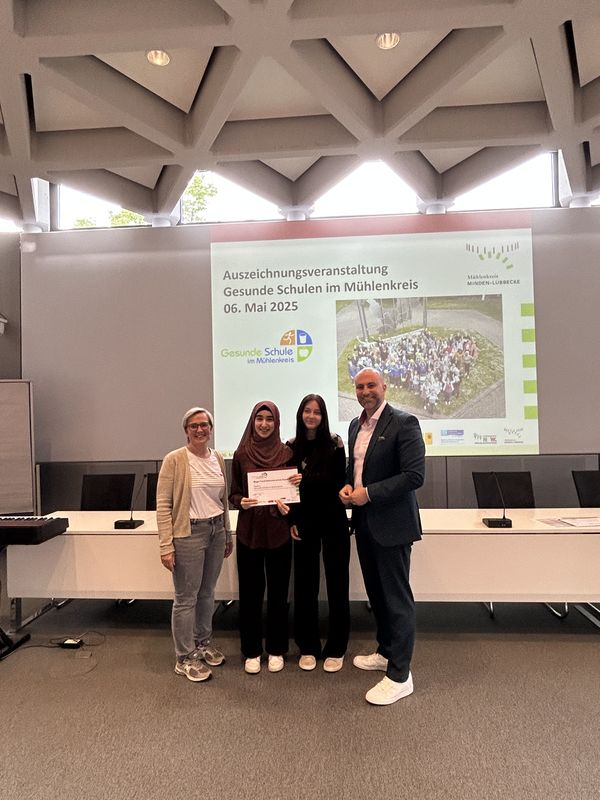 (28.05.2025, thile) Die Freude war groß, als die Birger-Forell-Sekundarschule erneut für ihr herausragendes Engagement im Bereich gesunde Ernährung als Teil des Projekts „Gesunde Schule im Mühlenkreis“ ausgezeichnet wurde. Die Schule nimmt seit einigen Jahren daran teil und hat sich dabei kontinuierlich für die Gesundheit der Schülerinnen und Schüler eingesetzt. Landrat Ali Dogan überreichte die Auszeichnung bei einer feierlichen Veranstaltung im Kreishaus in Minden.