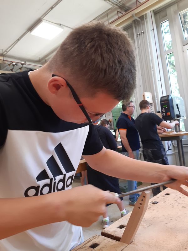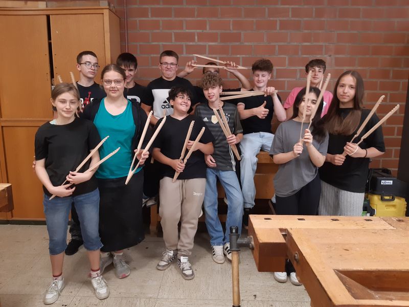 07.07.2025 (schm) 12 Schülerinnen und Schüler der 8d nahmen am Workshop „Holz“ am Berufskolleg Lübbecke teil.