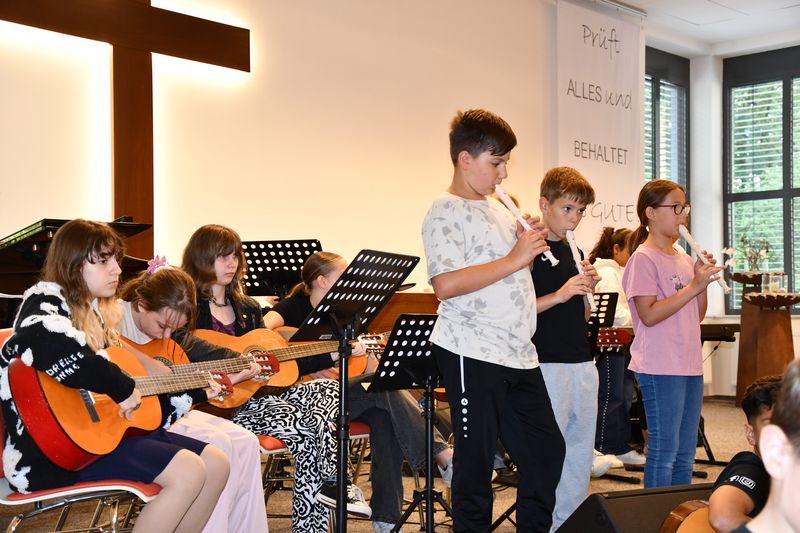 Den Gottesdienst ergänzten der Rap „Traumdeuter“ und die Gemeindelieder „Das Josephslied“ und „Er hält die ganze Welt in seiner Hand“ sehr stimmungsvoll. Am Ende sprachen Schülerinnen und Schüler der Klasse 6d und die Klassenlehrkräfte der neuen fünften Klassen die Fürbitten und das Vater unser. Nach dem Segen, gesprochen von Lothar Gustenberg, spielte die Musikklasse 7c zum Abschluss das Lied „River flows in you“. Die Lehrerinnen Sabine Matthäus, Sabrina Ramsberg und Claudie Schröder unterstützten bei der Vorbereitung und Durchführung des Gottesdienstes. An Darstellung und Musik waren die Klassen 6a, 6c, 6d, 7c und 8c sowie die Musik-AG beteiligt.