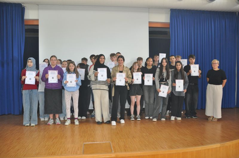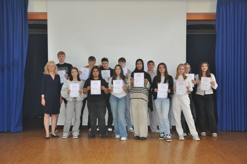 29.06.2025 Es ist wieder soweit: Das Schuljahr nähert sich dem Ende. Das nimmt die Birger-Forell-Sekundarschule jedes Jahr zum Anlass, Schülerinnen und Schüler zu ehren, die sich besonders in der Schule engagiert haben. Schulleiterin Anja Buhrmann überreichte, unterstützt von einigen Lehrkräften, viele Zertifikate an Jungen und Mädchen aus den Jahrgängen 5 bis 9. Die zehnten Klassen werden ihre Zertifikate mit ihren Abschlusszeugnissen erhalten.