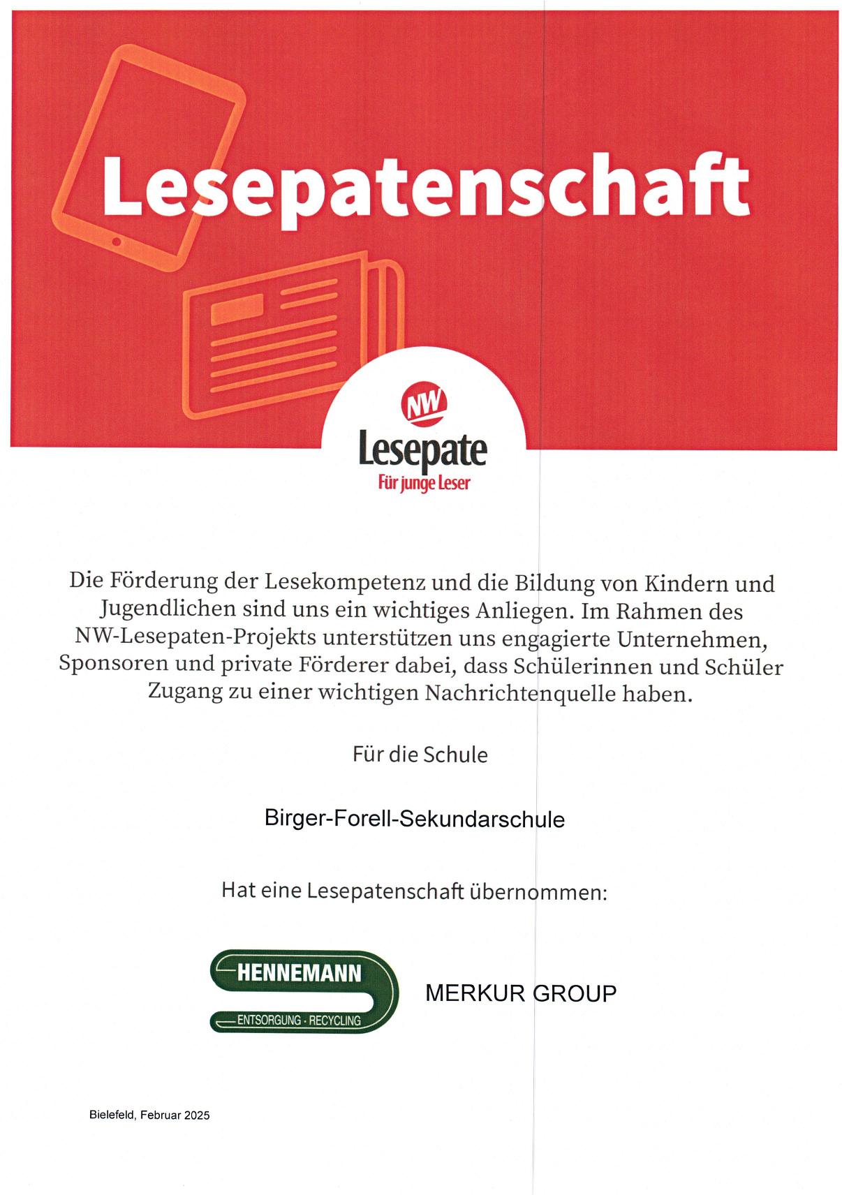 fern informieren. Denn dank der Lesepatenschaft, die die Firma Hempelmann Wittemöller übernommen