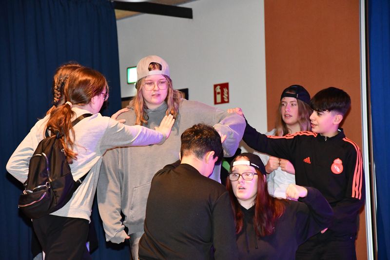 Die Theaterpädagogin ist freiberuflich in Hamburg unterwegs und stammt ursprünglich aus Porta Westfalica. Mit ihrem Engagement an der Birger-Forell-Sekundarschule zeigt sie ihre Verbundenheit zur Heimat. Kreativität, Teamarbeit und persönliche Entwicklung stehen in ihrer Arbeit im Mittelpunkt. Dass dies erfolgreich gelang, bewiesen die Schülerinnen und Schüler mit dem Stück „Max ist an allem schuld“. Darin geht es um Konflikte in Schule, Familie und zwischen Freunden, befeuert durch Schuldzuweisungen, Unverständnis und Gruppendynamiken. Die Lösung, um den Konflikt mit Max zu klären, ist ungewöhnlich: Eine Schülerin möchte Teil einer Gruppe sein. Doch sie darf erst dazugehören, wenn sie den Konflikt mit Max klärt. Das Stück gipfelt in den mehrfach wiederholten Sätzen „Soweit hätte es nicht kommen dürfen“, „Gewalt ist keine Lösung“, „Ich stehʼ auf“ und „Gegen Mobbing mit Mut“. Am Ende wendet sich eine Schülerin ans Publikum und stellt die Frage: „Was bedeutet Mut für dich?“