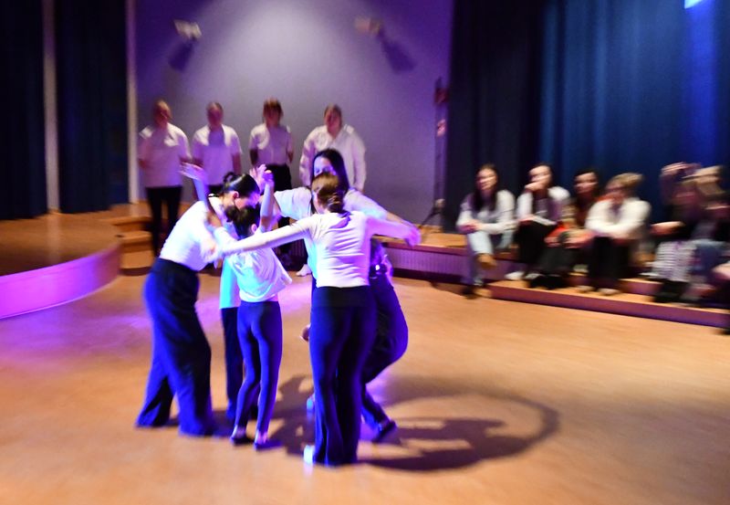 Schulleiterin Anja Buhrmann und Schulleiter Stefan Becker begrüßten die Gäste sehr herzlich und dankten der Stadt Espelkamp, dem Kreis Minden-Lübbecke und der Peter-Gläsel-Stiftung für die Förderung des Projekts, das somit jedes Jahr stattfinden kann. Sie hoben die Besonderheit der Veranstaltung hervor. Diese sei inzwischen nicht nur als Tradition fest im Schulleben verankert. Das Projekt lebe außerdem von der Kooperation, die bereits im zehnten Jahr gut funktioniere. Dabei sei es nicht hoch genug zu schätzen, dass die beiden Schulen jedes Mal auf externe professionelle Unterstützung zurückgreifen können. Die zentrale Rolle spielten die Schülerinnen und Schüler zusammen mit ihren Lehrkräften, ohne die es nicht gehe, hob Anja Buhrmann hervor. Bürgermeister Dr. Henning Vieker betonte in seinem Grußwort die Wichtigkeit des Projekts, nicht nur für die kulturelle Bildung, sondern auch für die gelebte Demokratie. Er sicherte die weitere Unterstützung des Projekts durch den Rat der Stadt zu und wünschte den Darbietungen viel Freude und Erfolg. Dieses Mal waren sechsundvierzig Schülerinnen und Schüler der 6. Klassen der Birger-Forell-Sekundarschule und siebenunddreißig Studierende der Fachrichtung Sozialpädagogik am Berufskolleg Lübbecke mit dabei.