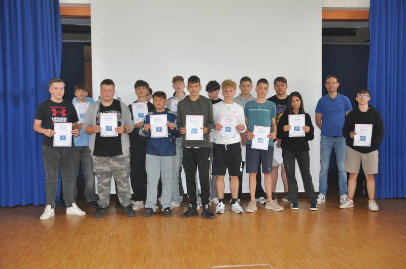 Die Schülerinnen und Schüler engagierten sich in den Musikklassen und der Schulband, nahmen erfolgreich am Pangea-Wettbewerb in Mathematik teil, arbeiteten verlässlich in der Schülergenossenschaft Kiosk 39 mit und waren als Sporthelfer in der Turnhalle und auf dem Sportplatz aktiv. Sie übernahmen Verantwortung in der SV, kochten, backten und spielten mit den Bewohnern eines Seniorenheims und zeigten ihre Talente beim Theaterspielen, Tanzen und Musizieren. Die Zertifikateinhaber für Informatik werden im nächsten Schuljahr bei einem besonderen Projekt mitmachen, in dem sie ihre Fähigkeiten weiter vertiefen und neue Kenntnisse erlangen können. Neu in diesem Jahr war die Teilnahme am Englischwettbewerb The Big Challenge. Alle dort erfolgreichen Jugendlichen hielten stolz die ihnen überreichten Bescheinigungen in den Händen. Die Tradition der Zertifikatsverleihung wertschätzt das Engagement der Schülerinnen und Schüler der Birger-Forell-Sekundarschule und zeigt ihnen, dass sich Engagement lohnt.