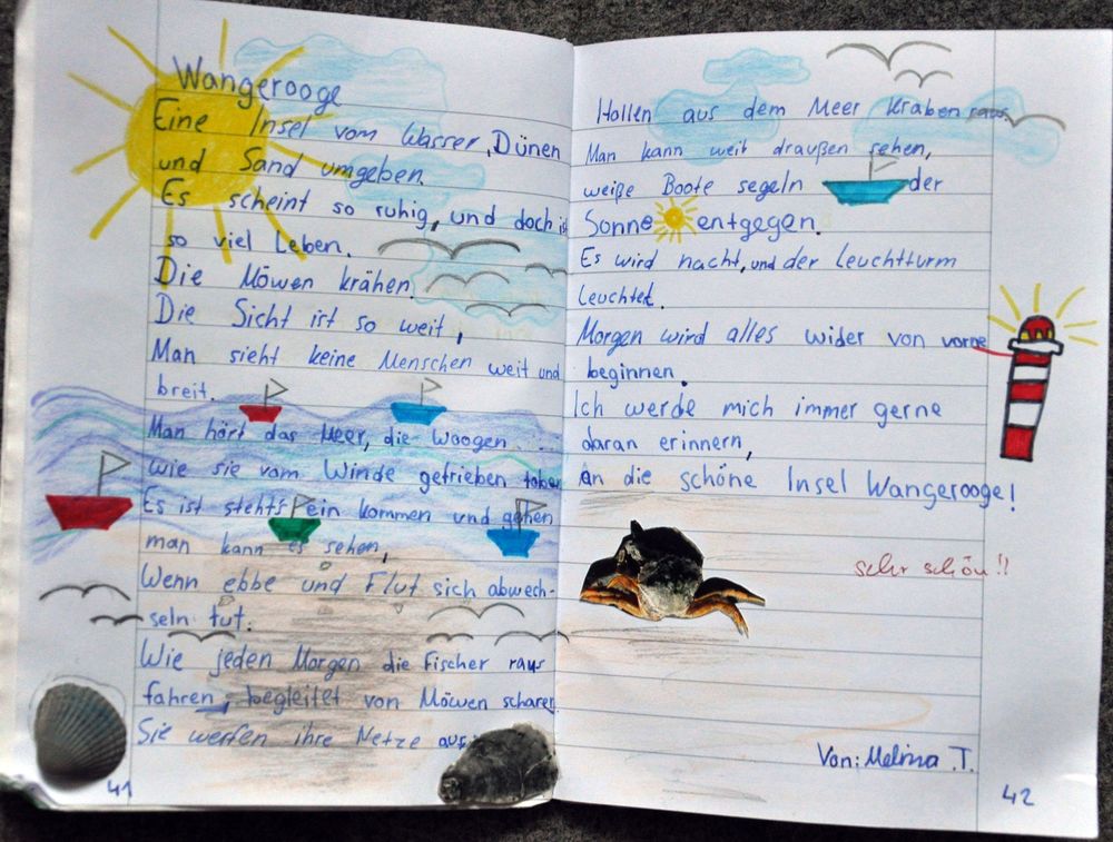 In den darauffolgenden 6 Tagen wurde die Insel erkundet: alle Klassen besuchten das Naturpark-Haus im Ort, machten eine Wattwanderung, nahmen an der Inselrallye teil, gingen in die „Meerwasser-Oase“ im Ort schwimmen, hatten einen guten Blick vom Leuchtturm aus, fanden Muscheln, Krebse und Strandgut am Spülsaum, beobachteten die Vogelwelt.